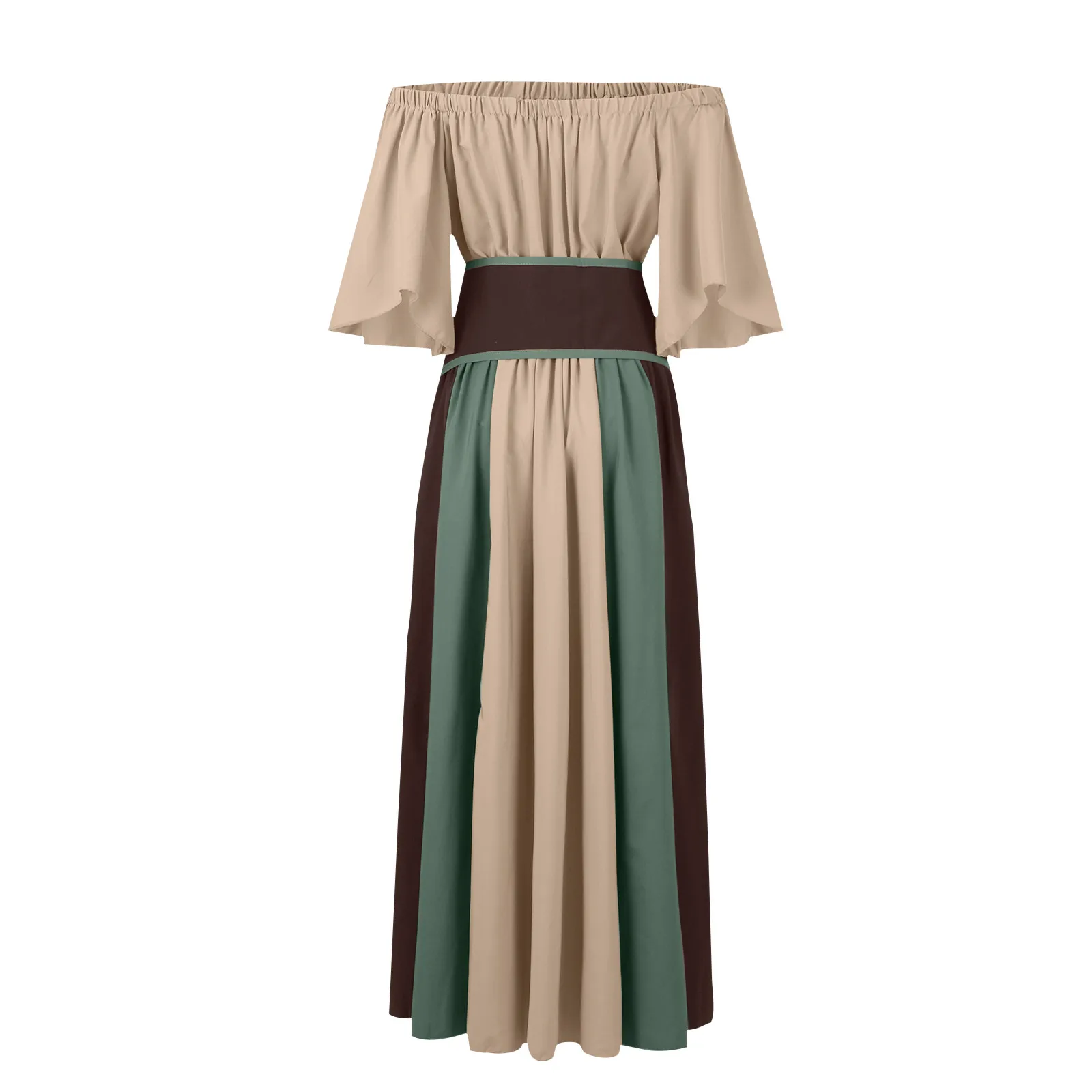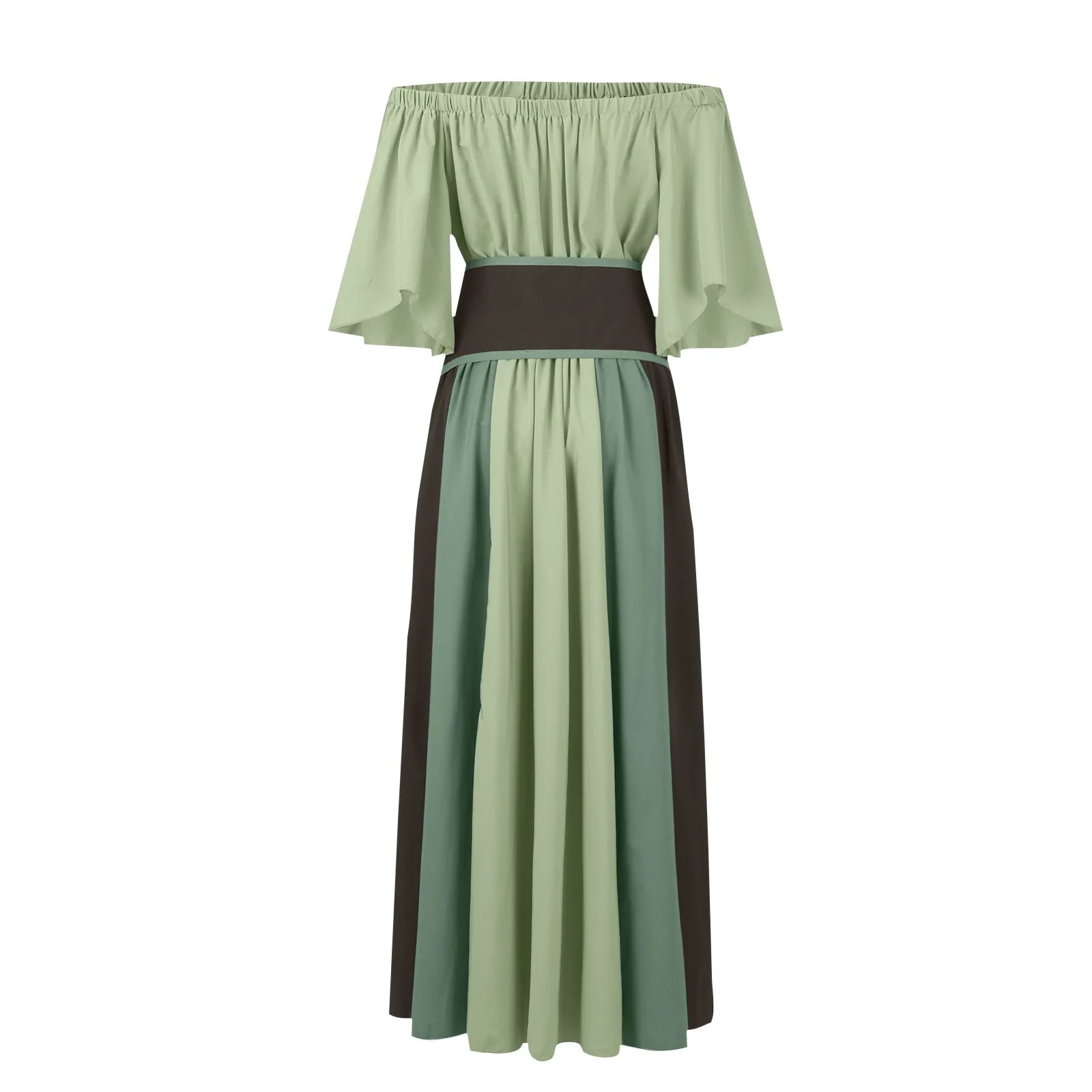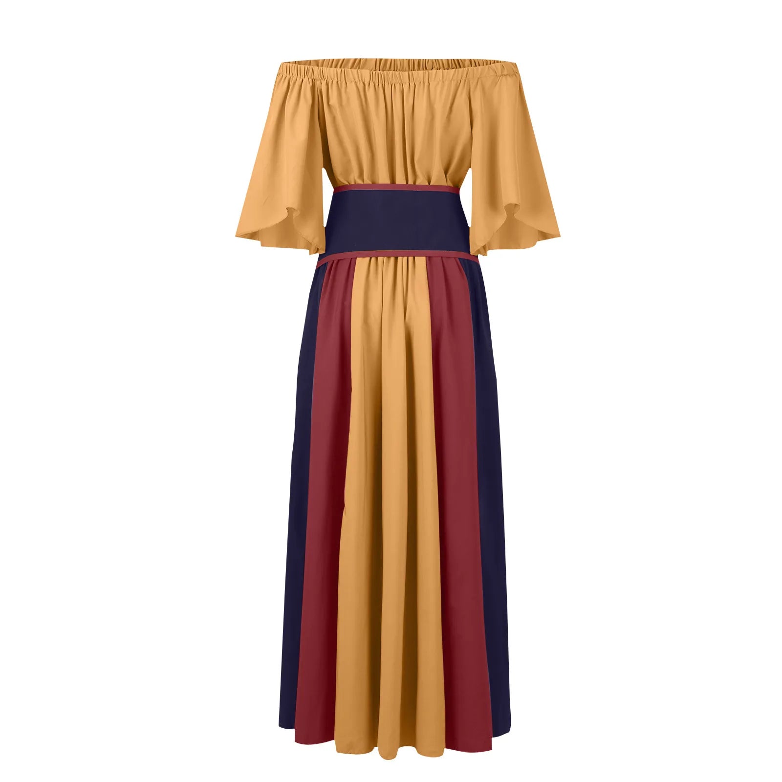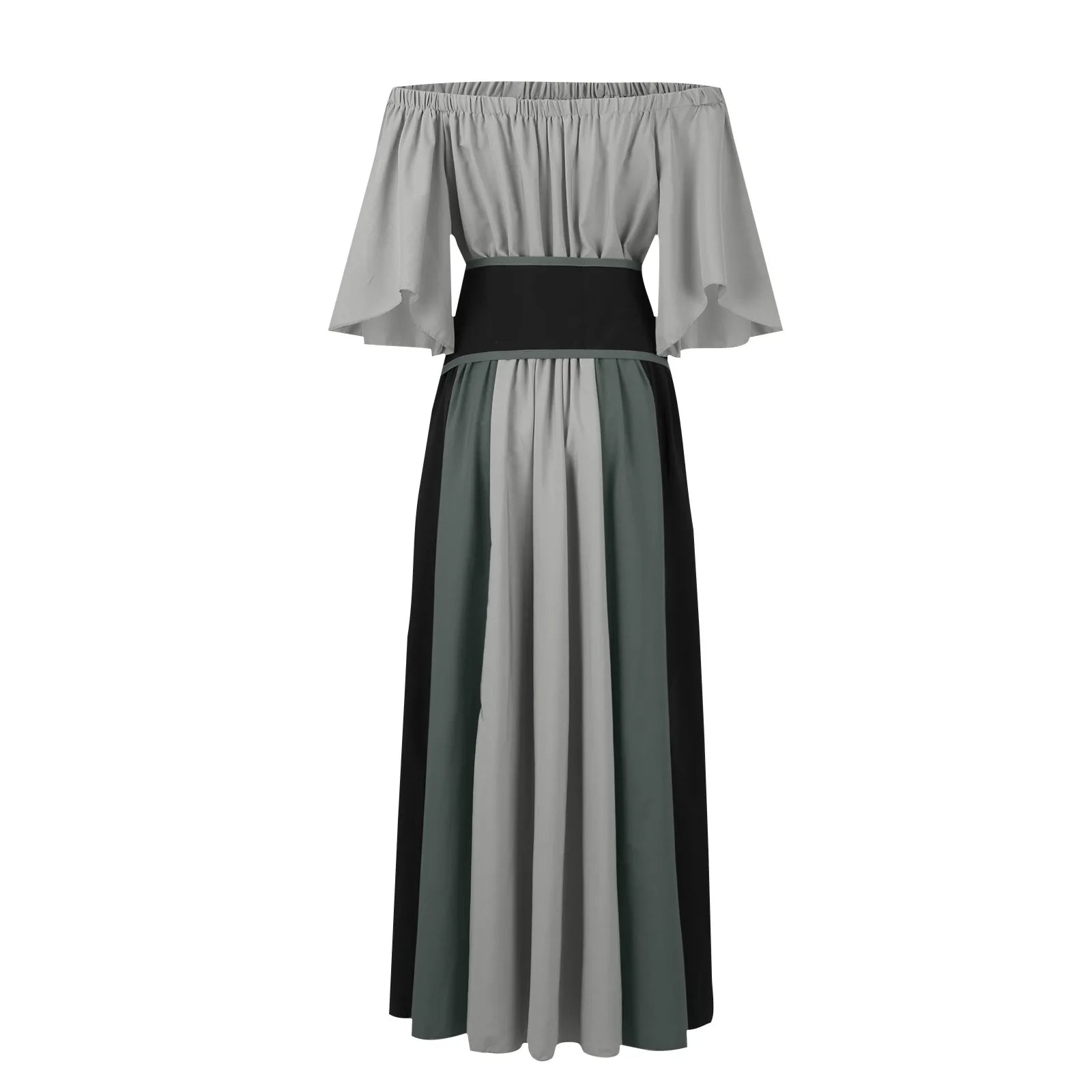 Women's Fashion Retro Collision Slim Flying Sleeve Big Hem Dress One Shoulder Dresses