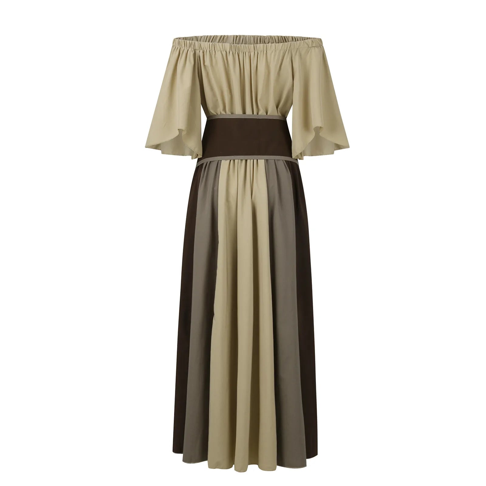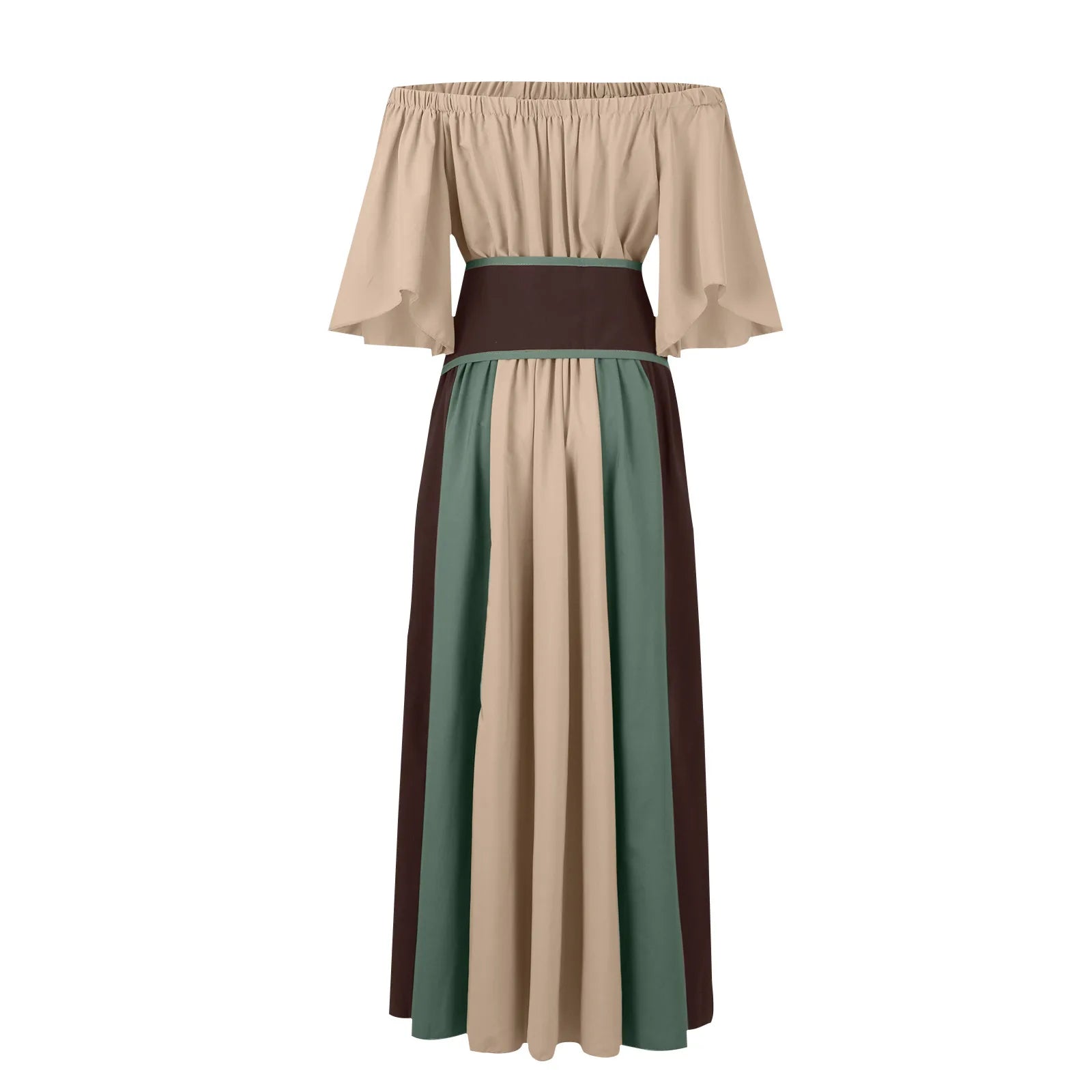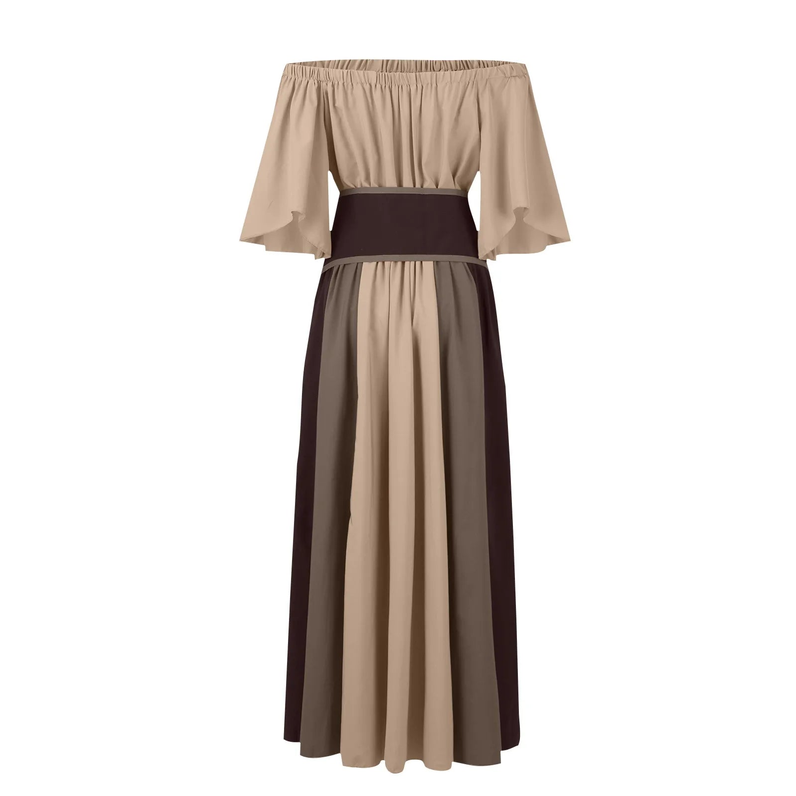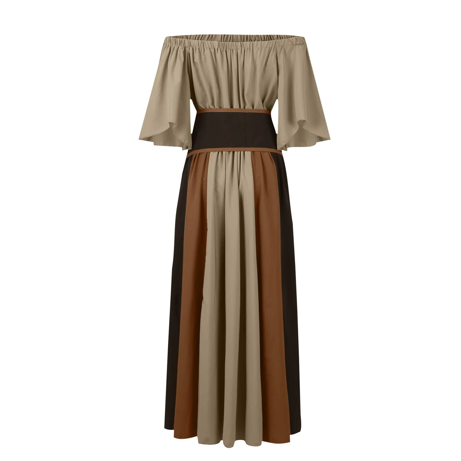 Women's Fashion Retro Collision Slim Flying Sleeve Big Hem Dress One Shoulder Dresses