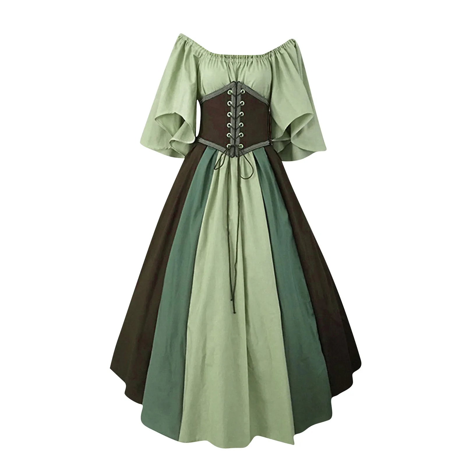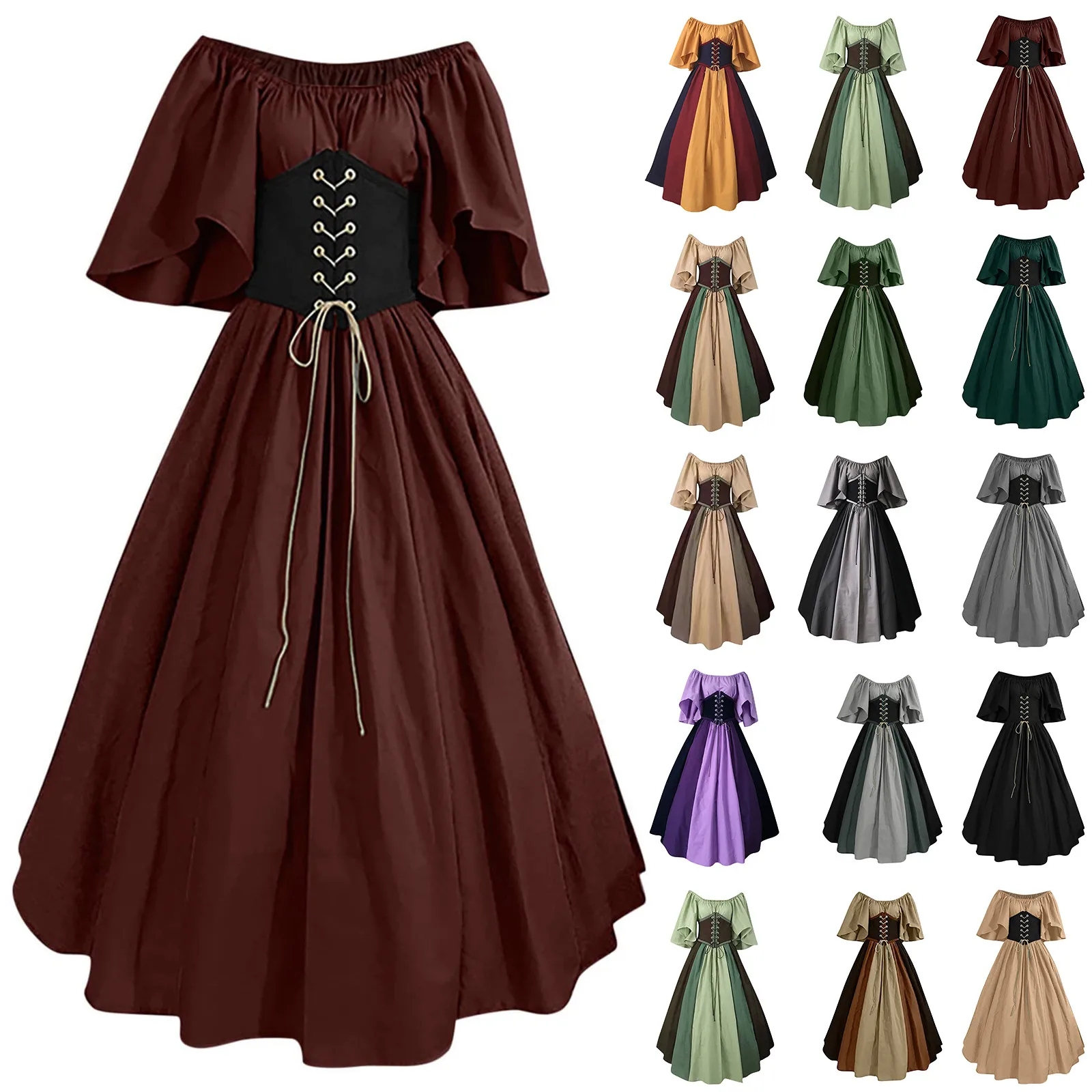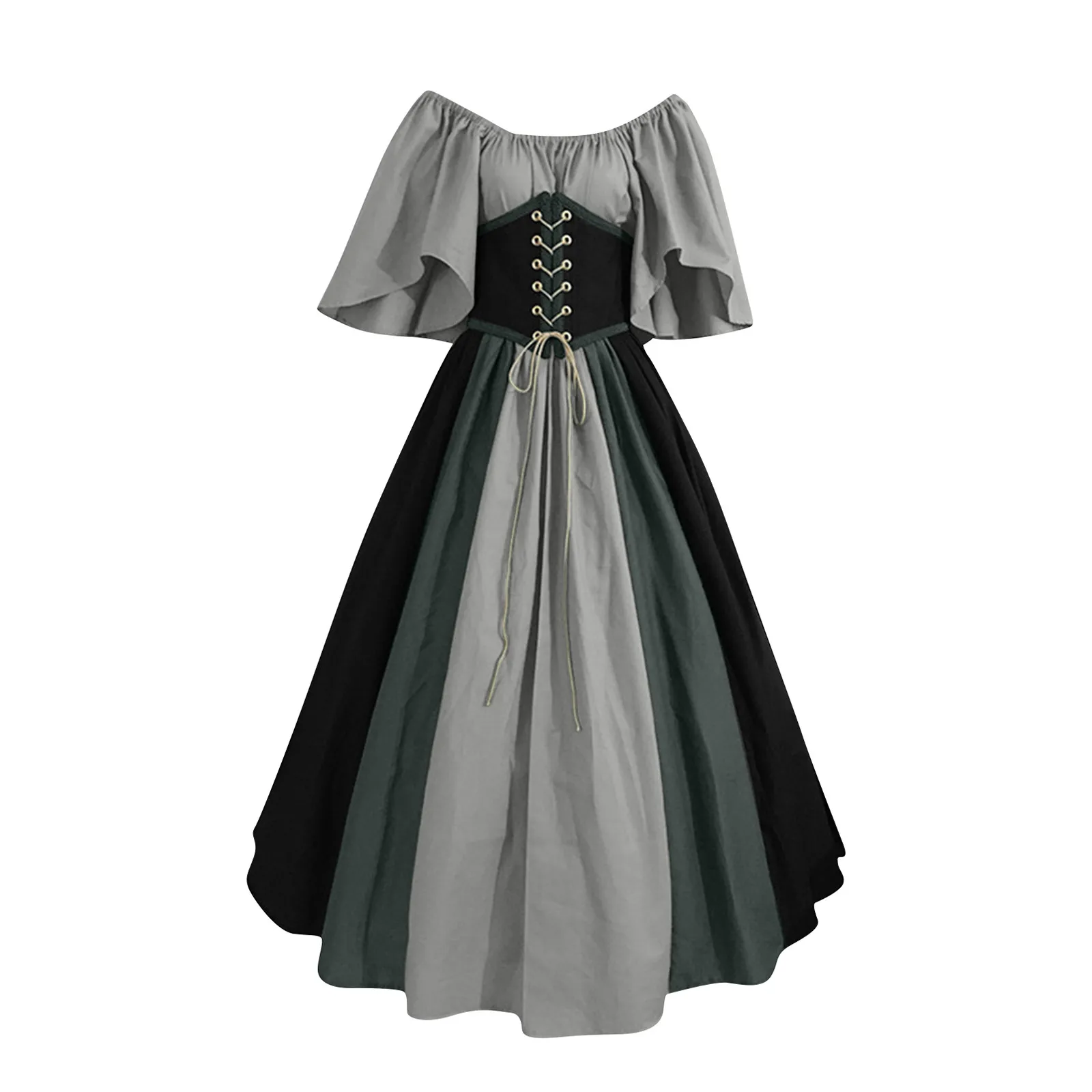 New Medieval Costume for Women Halloween Corset Gothic Renaissance Dress Plus Size Flare Sleeve Ball Gown Cosplay Clothes