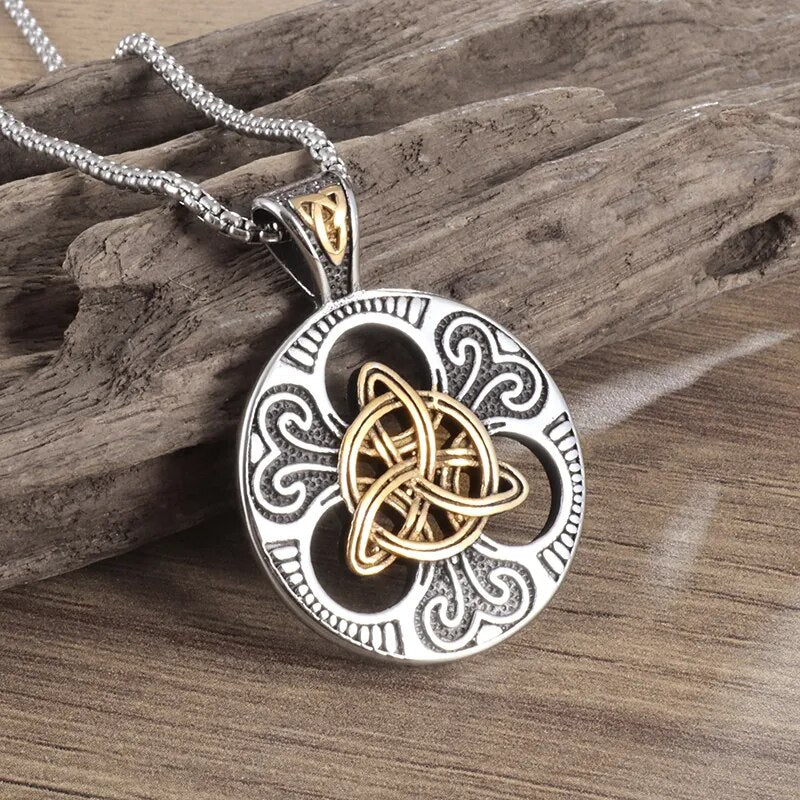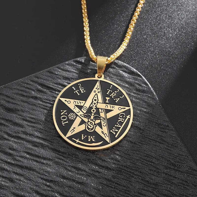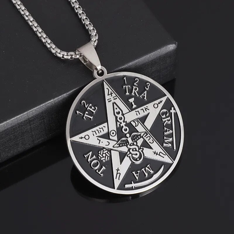 Classic Vintage Metal Triangle Eyes Rotatable Round Pendant Necklace Men's Fashi...
