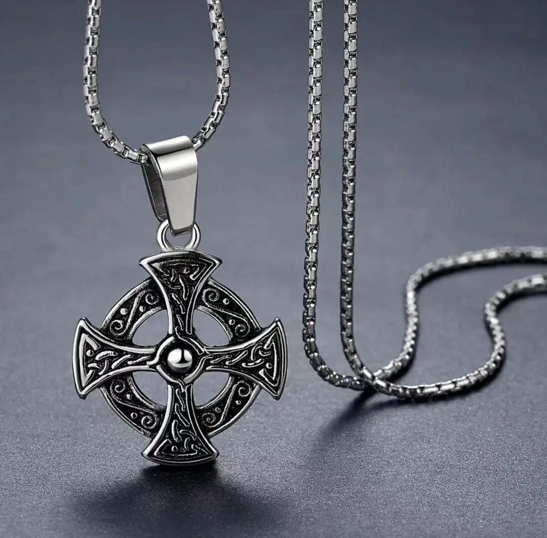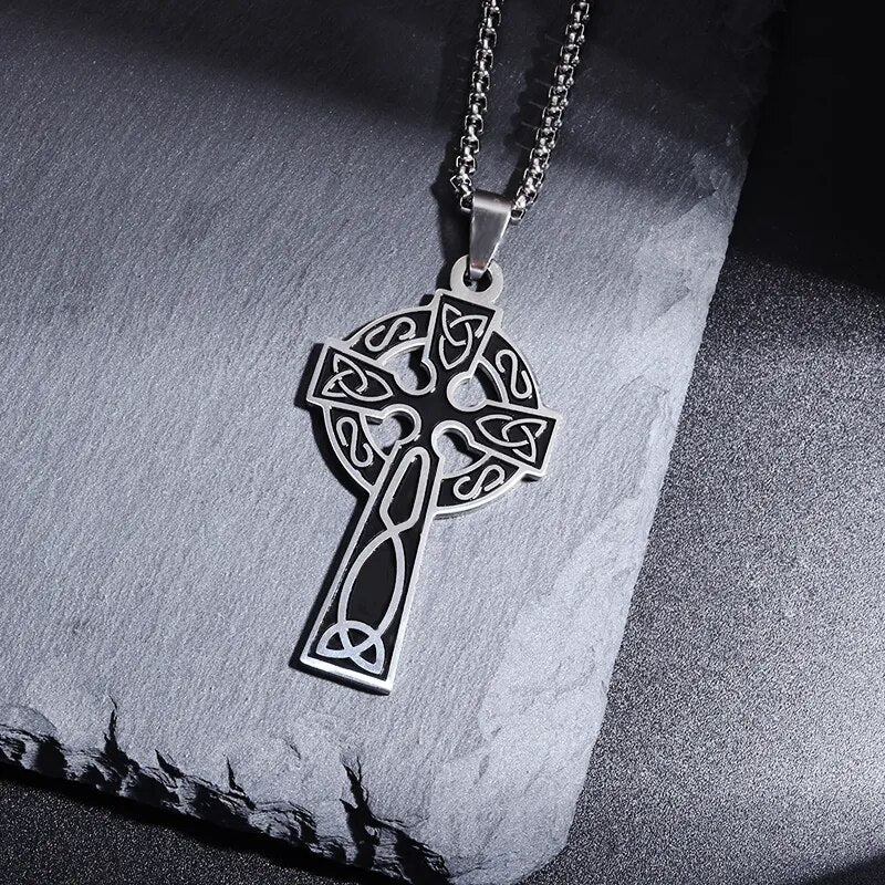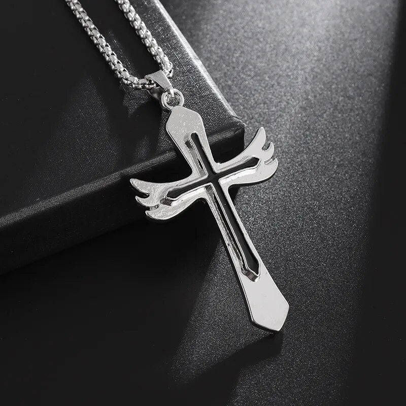 New Black Silver Two Color Cross Pendant Necklace for Men Women Chain Necklace F...