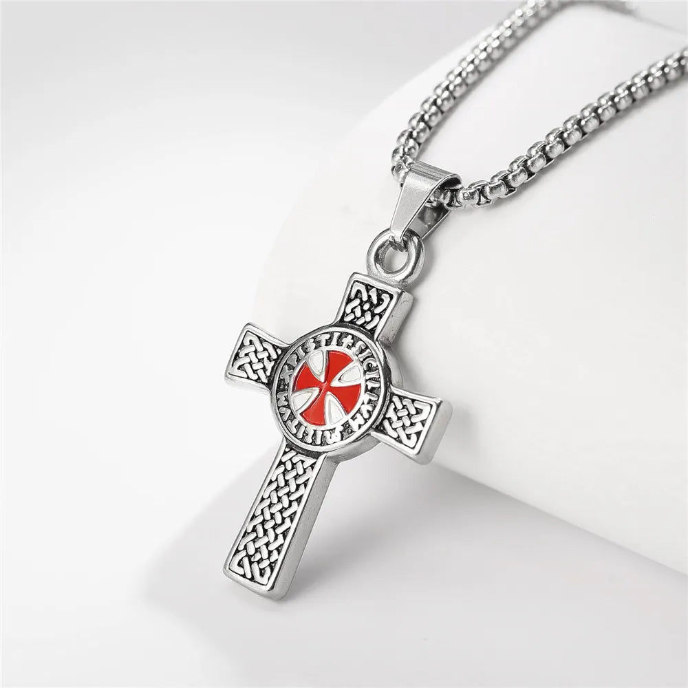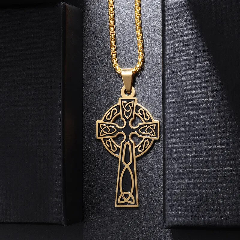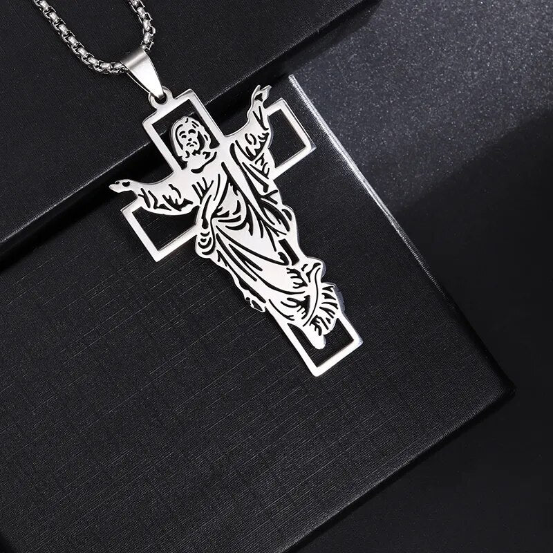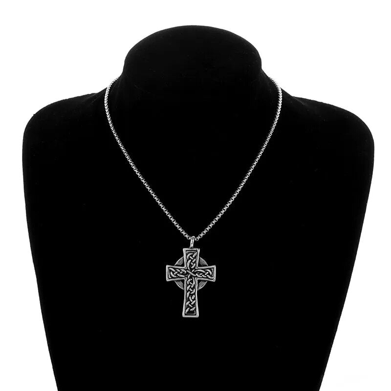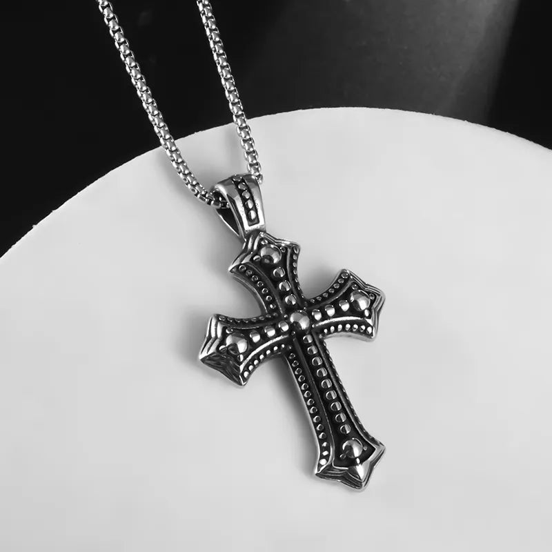 Vintage Fashion Stainless Steel Double Color Cross Pendant Necklace for Men Wome...