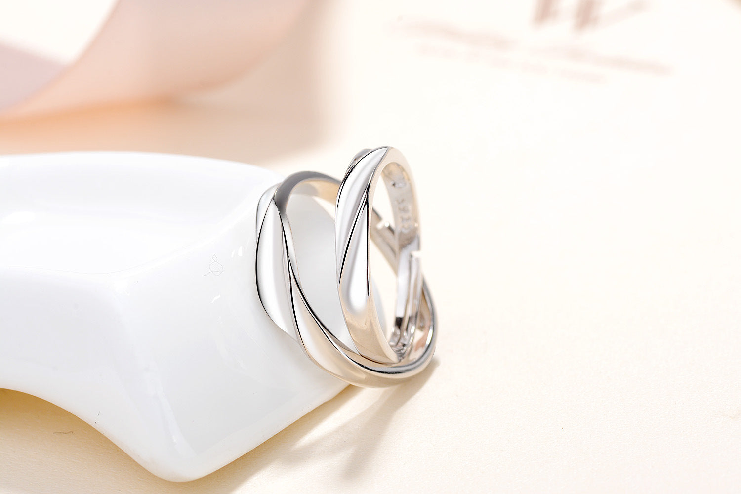 New S925 Sterling Silver Water Ripple Couple Ring Ring Love Interwoven Ring Korean Valentines Day Birthday Gift