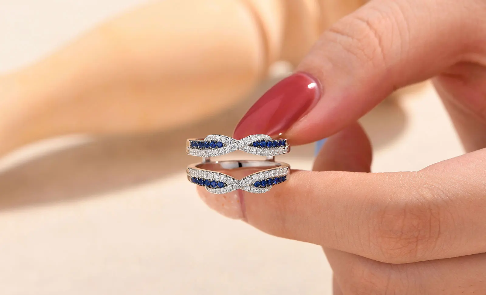 Newshe 925 Sterling Silver Black Blue White 5A Grade Cubic Zircon Wedding Ring Enhancer for Women Twist Rope Design Fine Jewelry