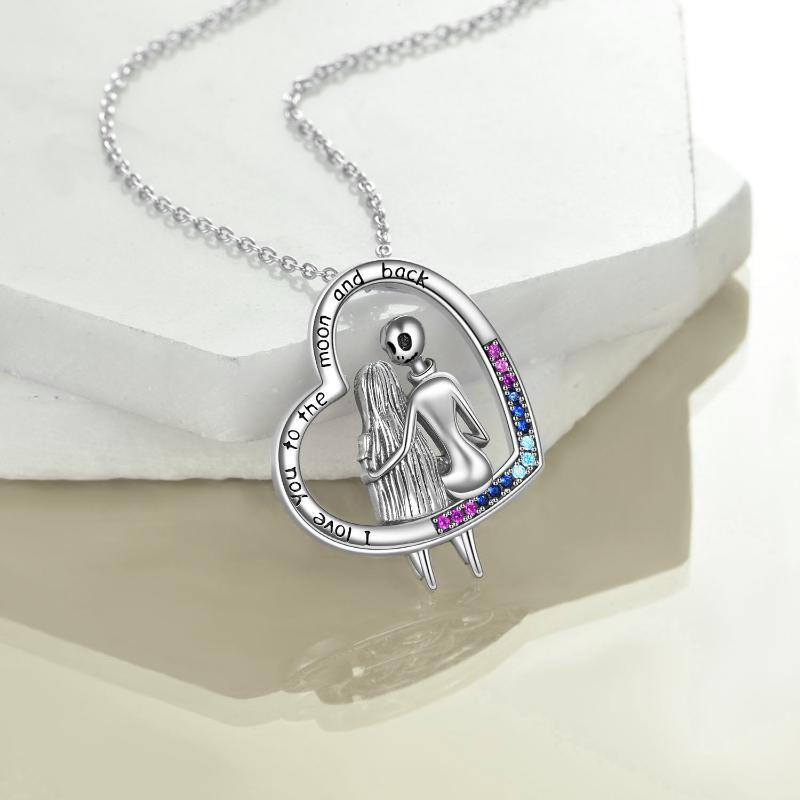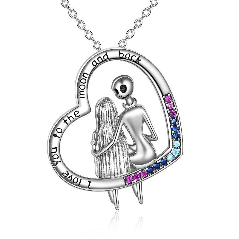 Nightmare Before Christmas Necklace Gifts Sterling Silver Jack Skellington Infinity Heart Pendant Necklace Skull Jewelry Gifts for Women