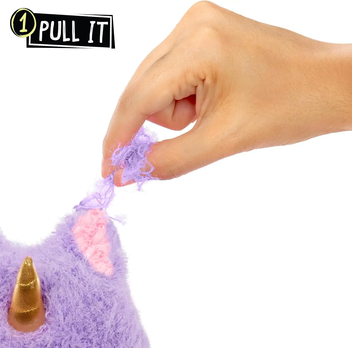 CREATIVITY & DIY: Get creative with the different ways you pull your fluff. Give your character a mustache, unibrow, heart cheeks or even a mohawk - there are so many ways to uniquely customize as you pull and reveal!