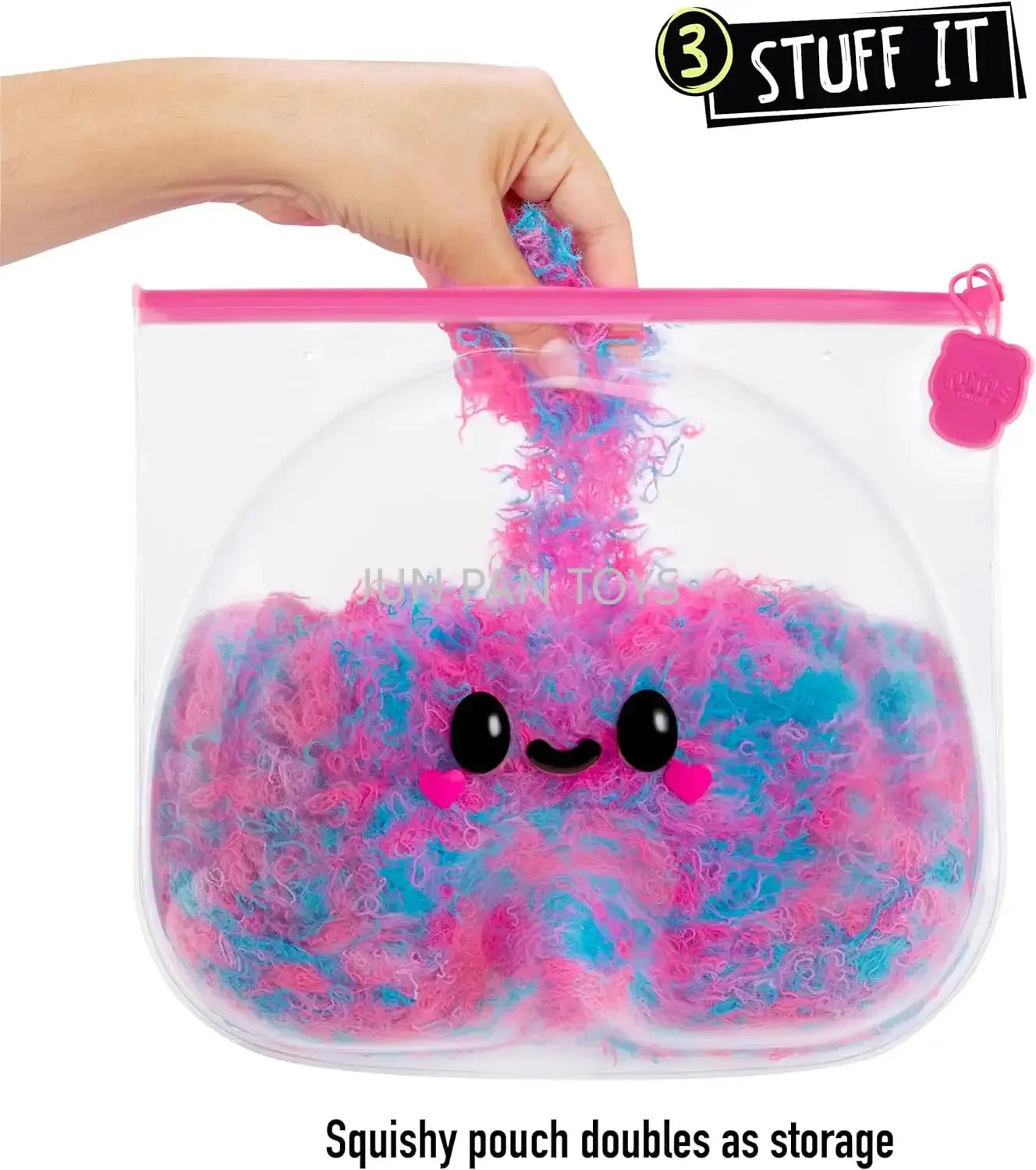STORAGE POUCH: The soft squishy bag doubles as storage for your pulled fluff and becomes a second friend for extended play. Its squishiness also makes it a great fidget toy!