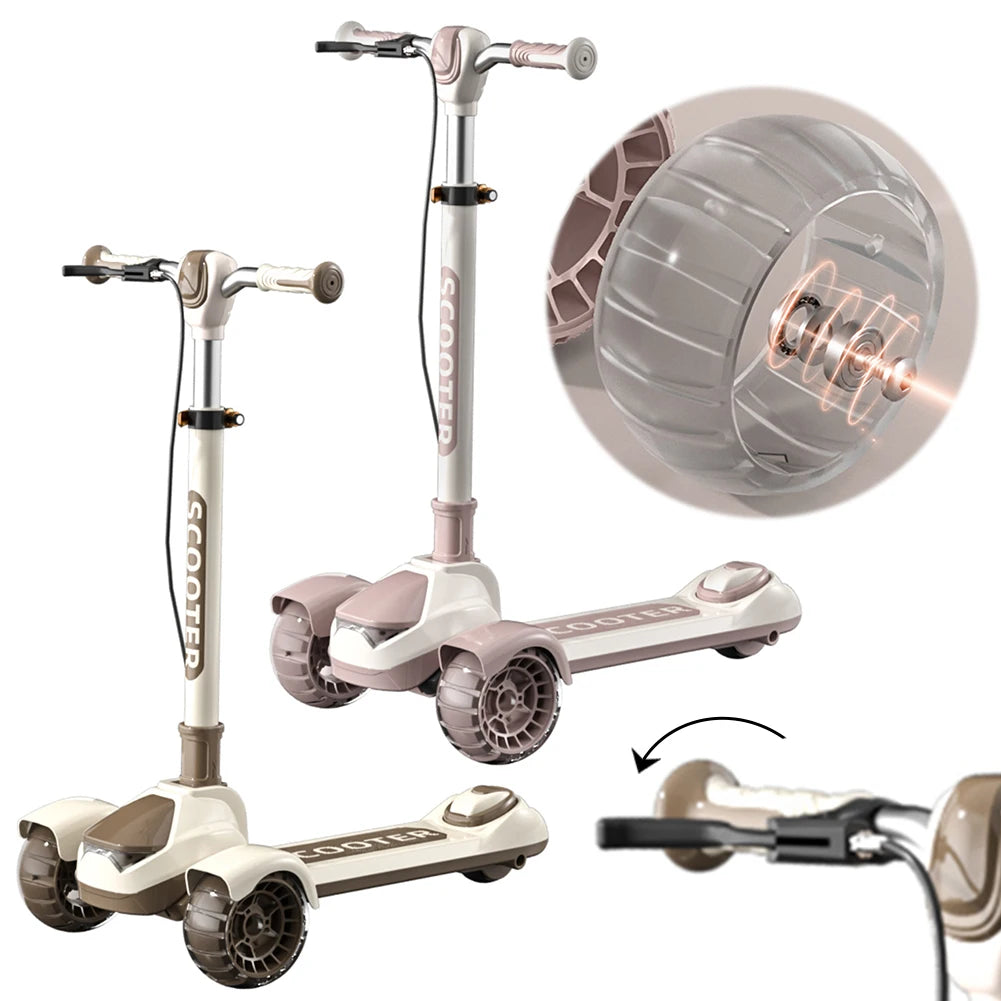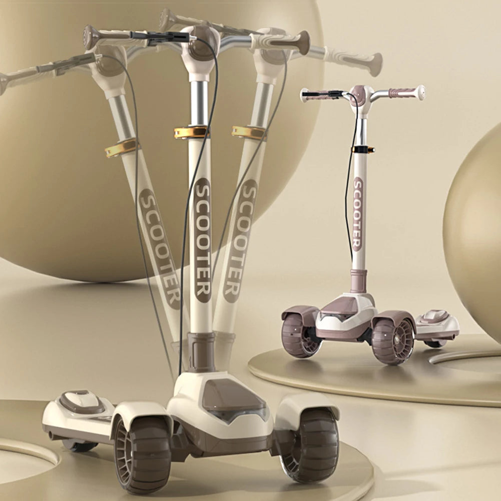 Outdoor Child's Kickboard Foldable Kick Scooter Flash Wheels Adult Kids Electric Scooter 3 Wheel Handbrake for 5-18 Years Old