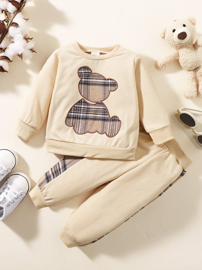 Plaid Bear Graphic Tee and Plaid Print Pants Kit