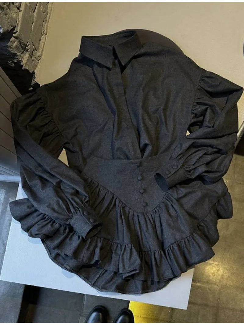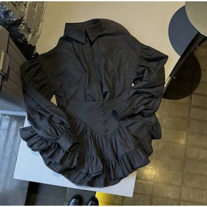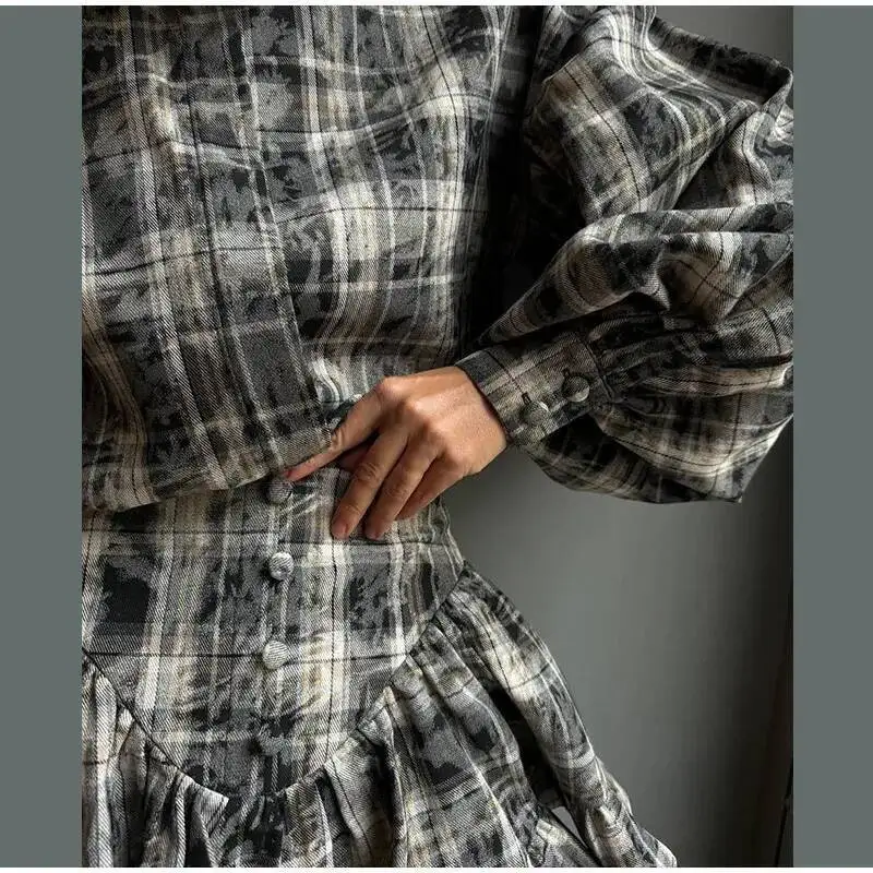 Plaid Print Shirt Ruffles Skirts Set Women Elegant Lapel Button Up Tops Loose Mini A-line Skirt Spring New Lady Chic Outfit LK9Q