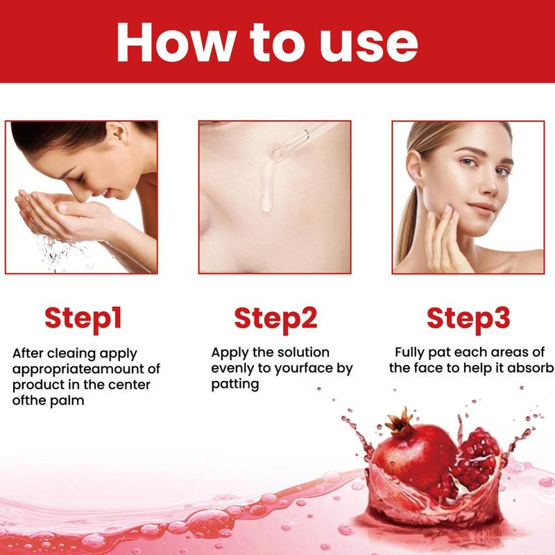 1、【Improve Rough Skin】Because of the pomegranate extract in Pomegranate Essence, it can make your skin cells more active, thereby soothing, improving rough skin, and helping to firm your skin.