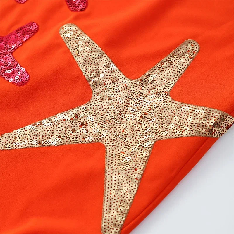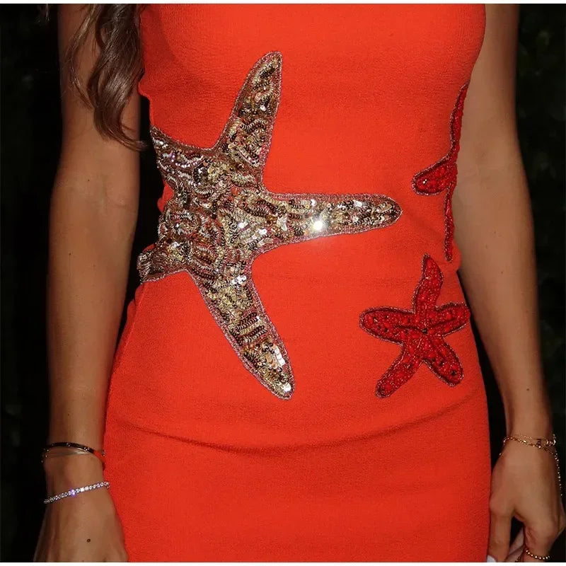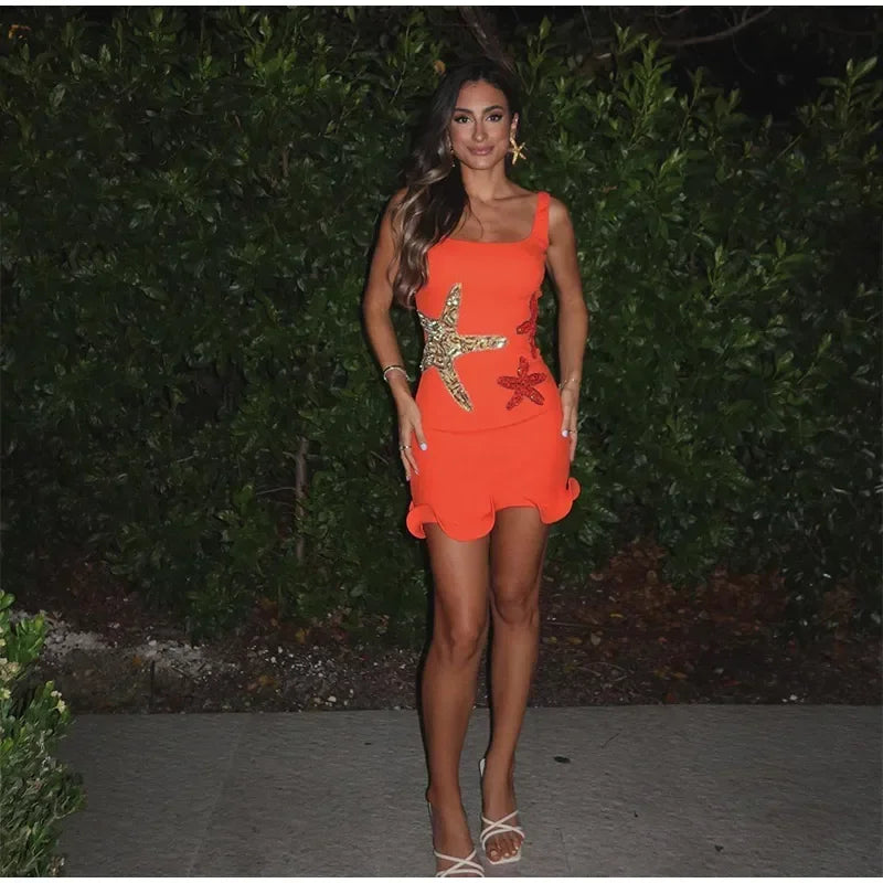 Prined Casual Women Star Mini Dress Fashion Sling Sleeveless Backless Pleat High Waist Robe 2025 New Female Beach Vacation Wear