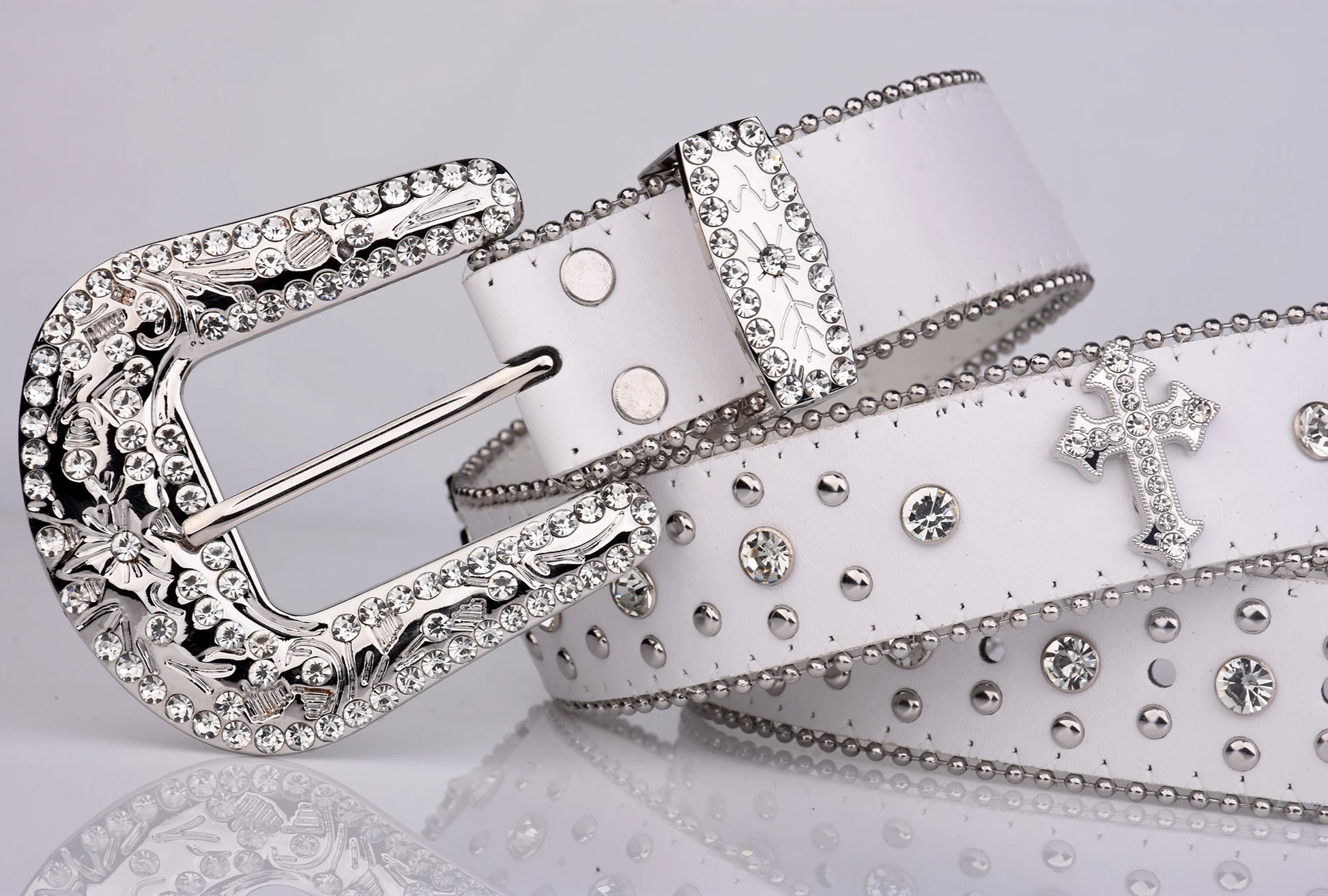 Punk Rhinestone White Belt female male fashion western jeans female jeans jewelry fashion design Y2K Jeans Belt