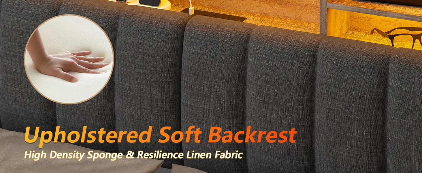 - 【Upholstered Design Modern Bed】Classical neutral-toned linen fabric upholstery, which is breathable and wear-resistant, adds sophisticated style to any bedroom. This upholstered bed frame gives you a comfortable reclining experience that is not only stylish but also functional, perfect for the modern bedroom.
