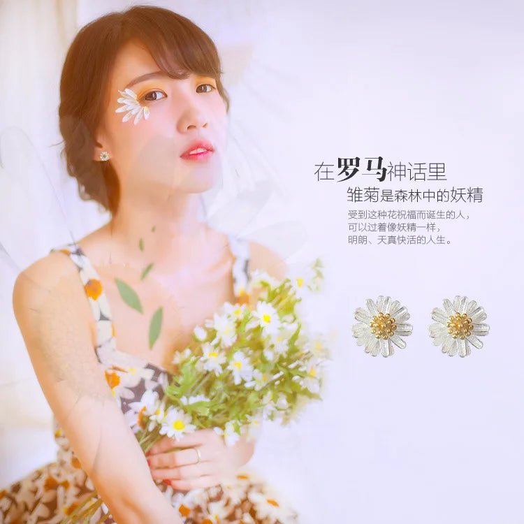 Real 100% 925 Sterling Silver Daisy Stud Earrings for Women Girls Fashion sterling-silver-jewelry brincos brinco