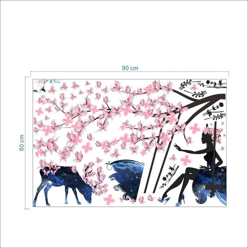 Romantic Flower Fairy Swing Wall Stickers for Kids Room Wall Decor Bedroom Living Room Children Girls Room Decal Poster Mural