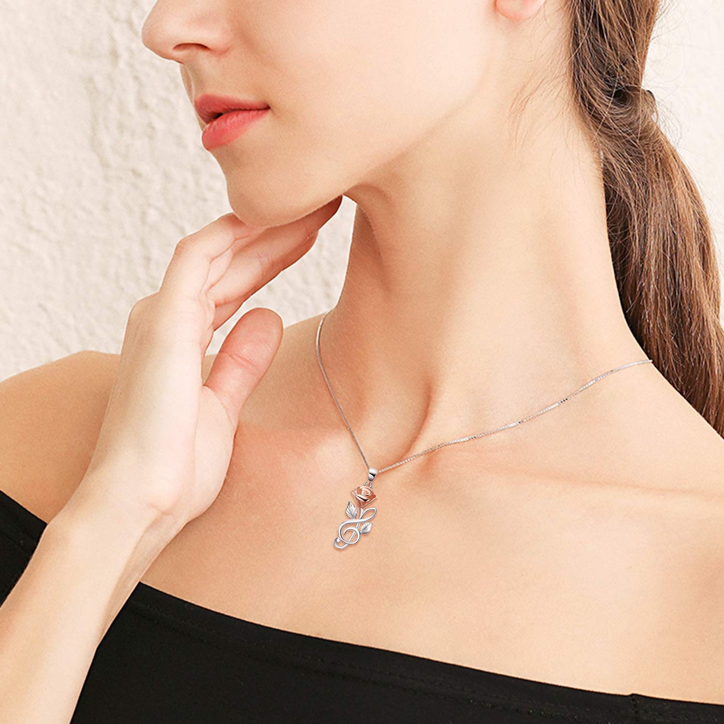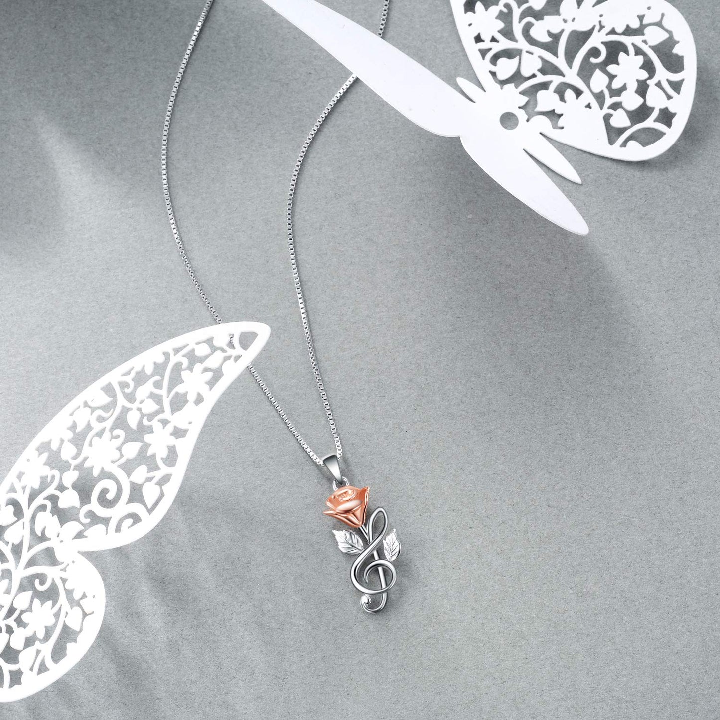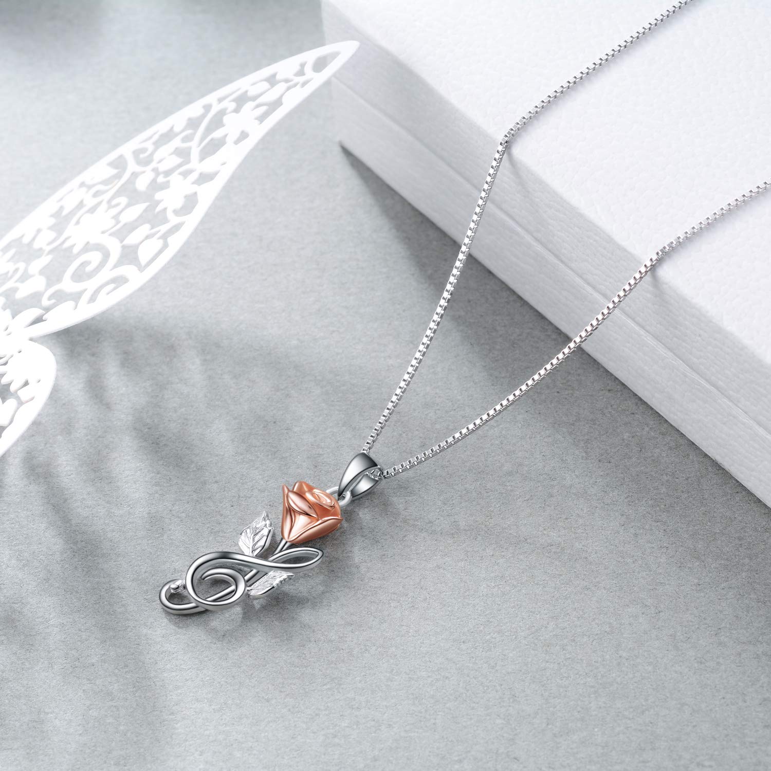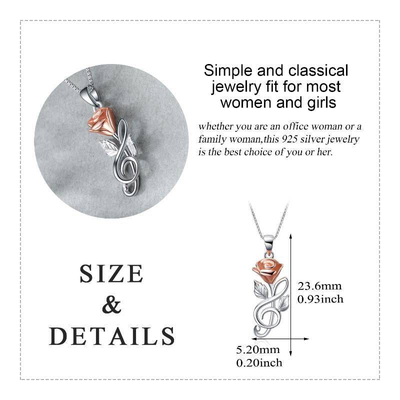 Rose Necklace Sterling Silver 3D Rose Flower Pendant Necklace with Musical Note Jewelry
