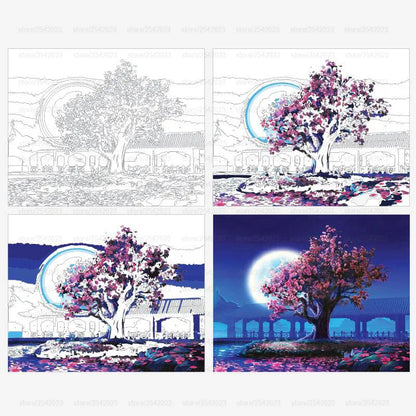 RUOPOTY Romantic Moon Night Landscape DIY Painting By Numbers Kits Modern Wall Art Picture Handpainted For Home Decor 40x50cm