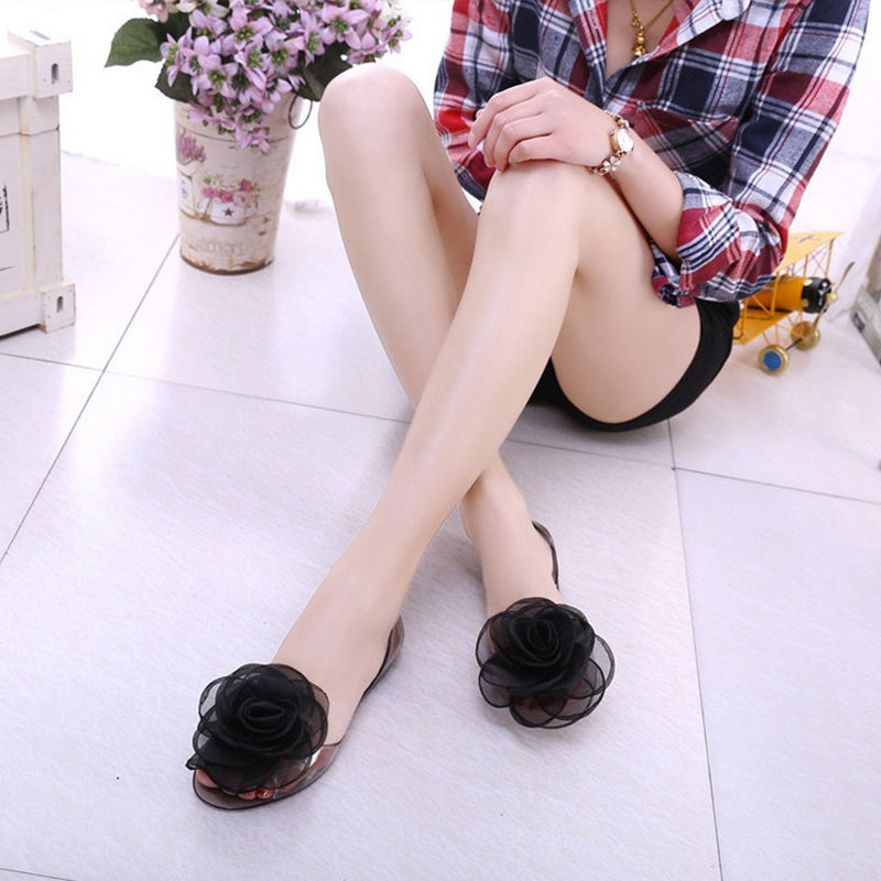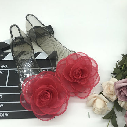 Sandals female summer Flat bottom Lace Big flower Trochanter transparent Plastic Women's Shoes melissa 2022 summer new pattern
