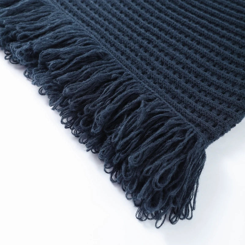 Sexy Knitted Tassel Top Skirt Women Set Dark Blue Long Sleeve Lapel Button Tops Pleated Mini Skirts 2025 Fashion Solid Lady Suit