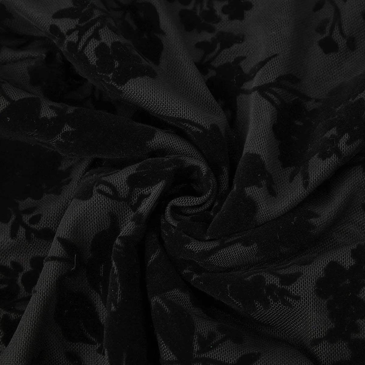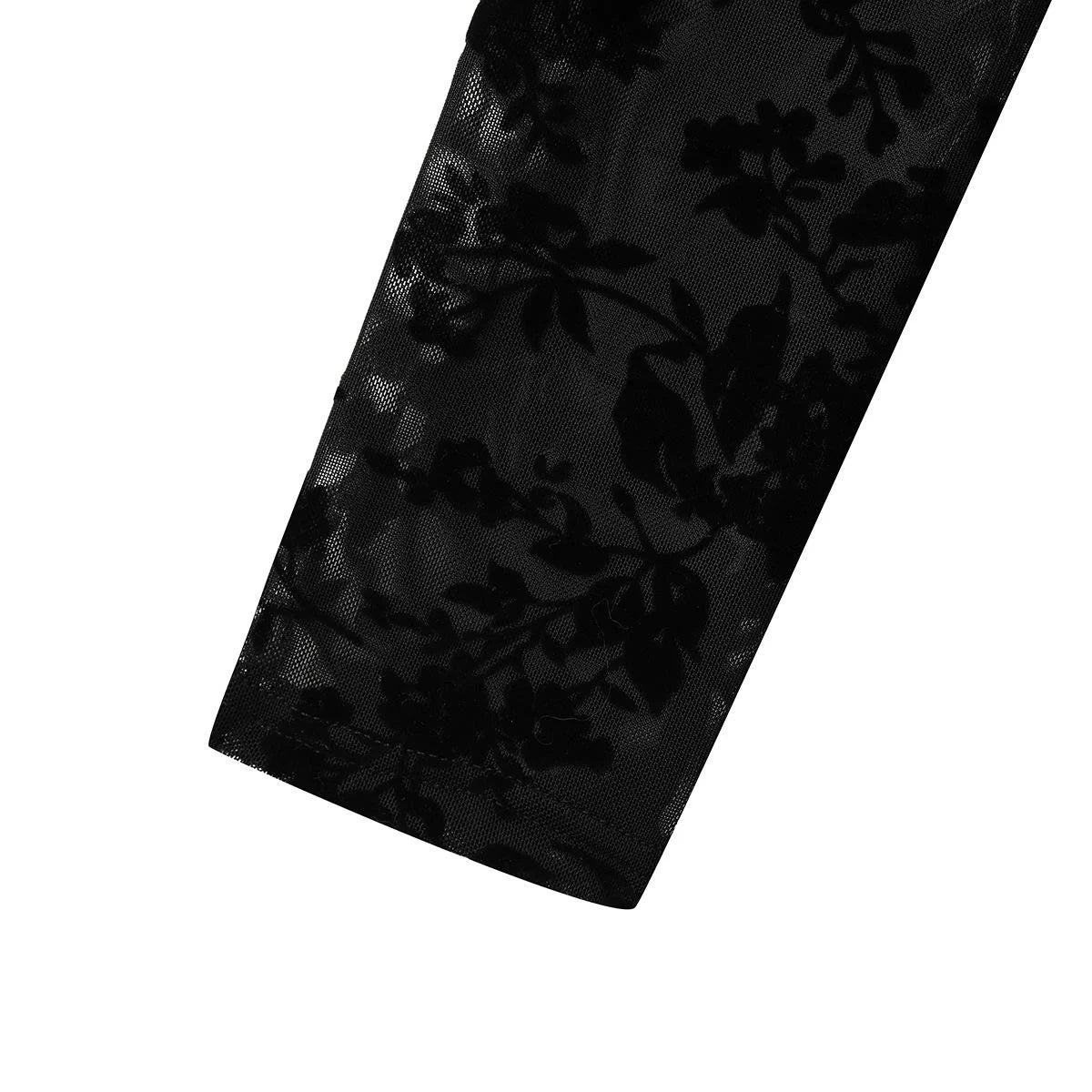 Sexy Women's Black Floral Flocking Sheer Mesh Mock Neck Long Sleeve Bodysuit