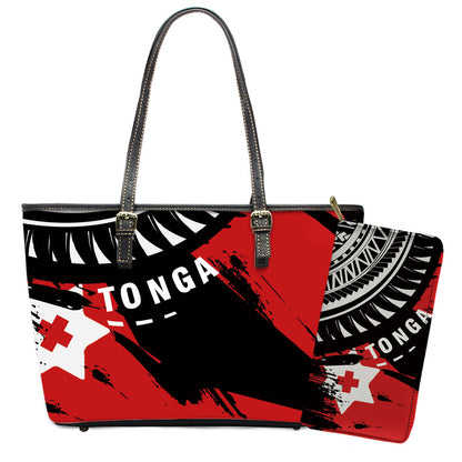 Shoulder Bag Wallet Polynesian Turtle Stitching Printing Pu Tote Bag Long Wallet Mother Bag Coin Purse