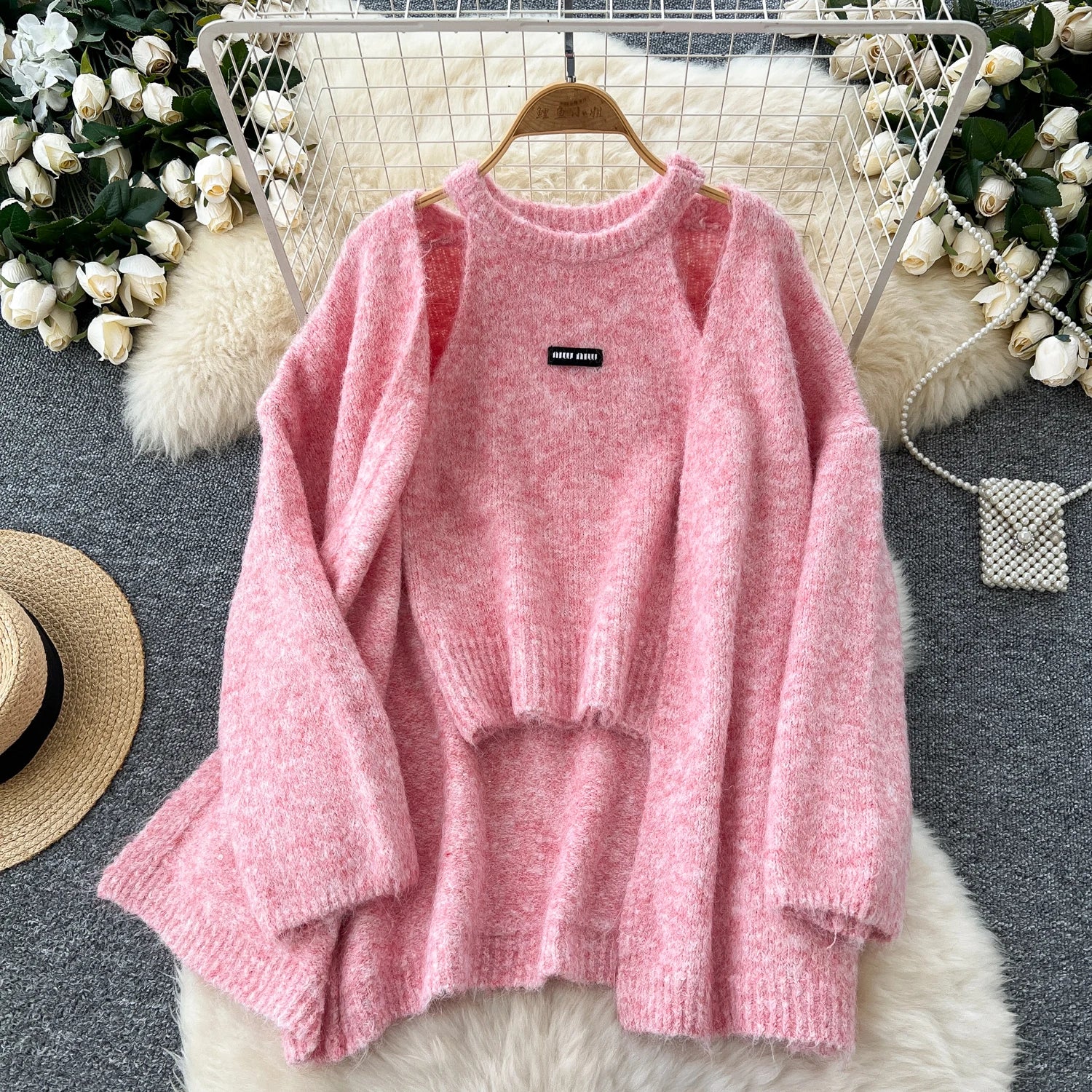 SINGREINY Fashion Solid Cashmere Sweater Long Sleeves Loose Warm Cardigan+Sleeveless Knitting Tank Top Winter Gentle Casual Tops