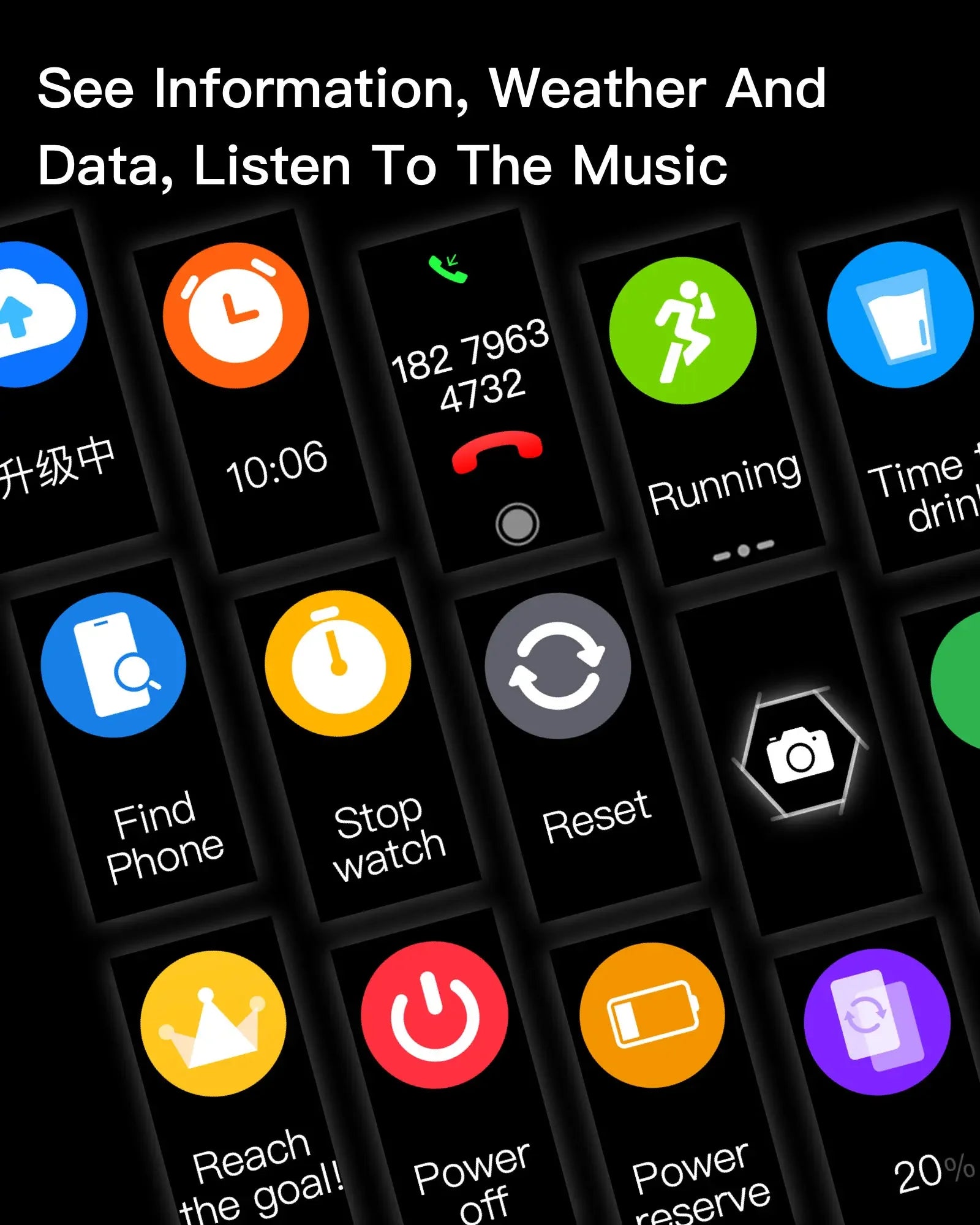 • More functions:Alarm clock, custom dial, do not disturb mode, wrist light screen, Home Health, Stopwatch