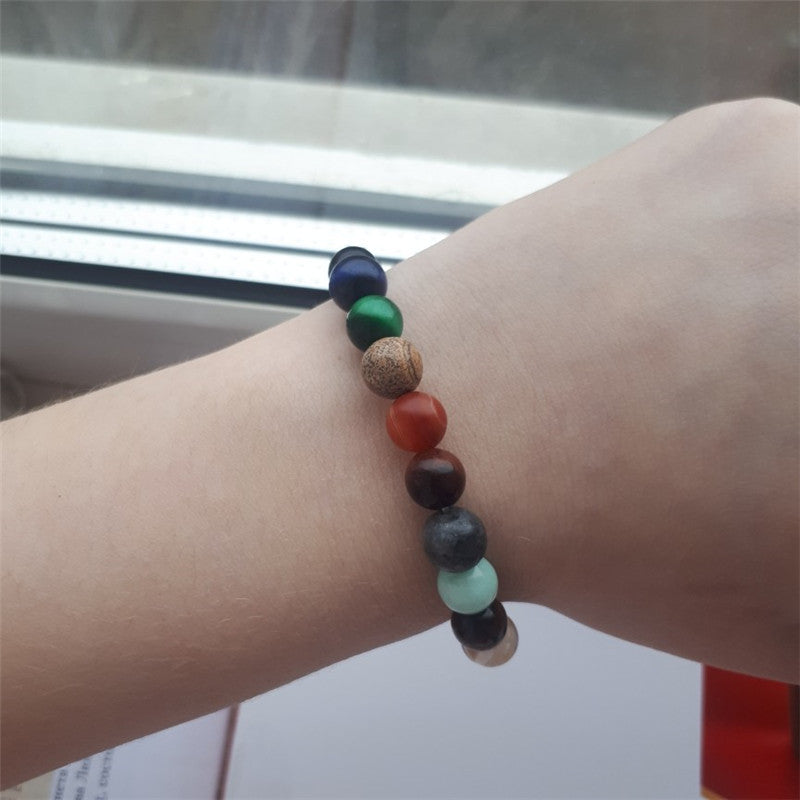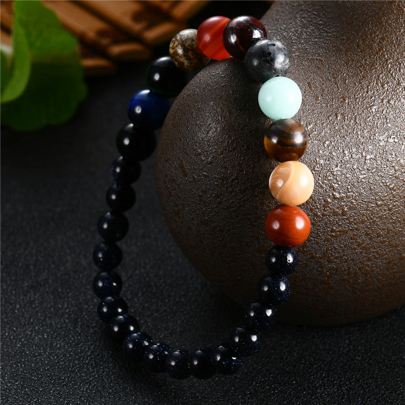 This Stone bracelet contains eight different colored gemstones, corresponding to the eight planets in the solar system.