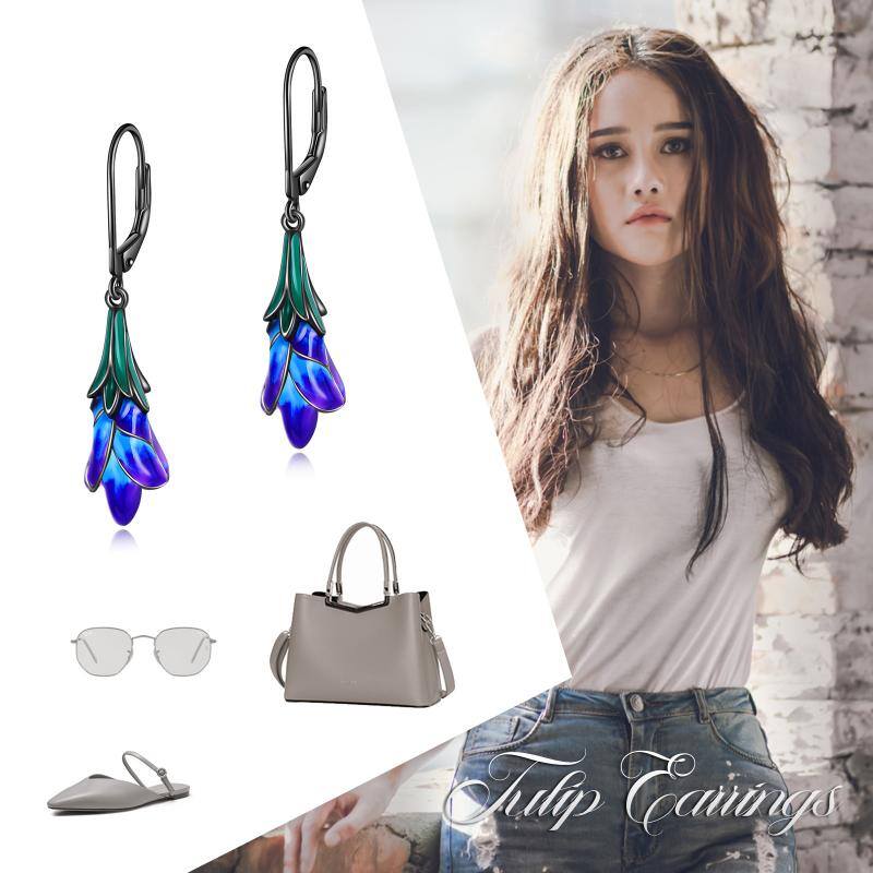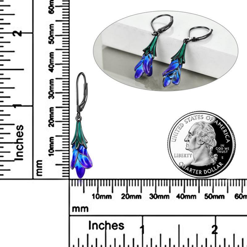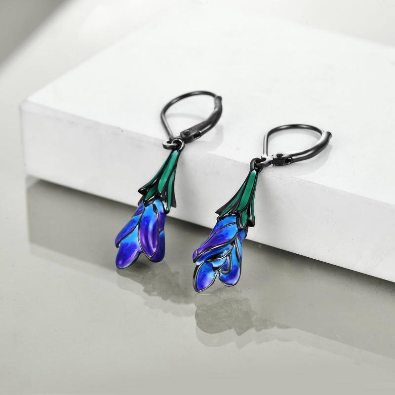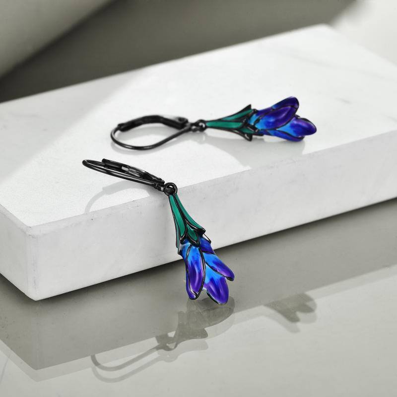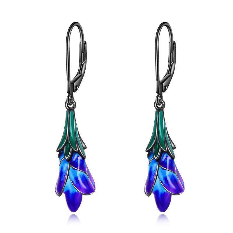 Sterling Silver Purple Tulip Flower Dangle Handmade Dangle Drop Earrings