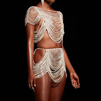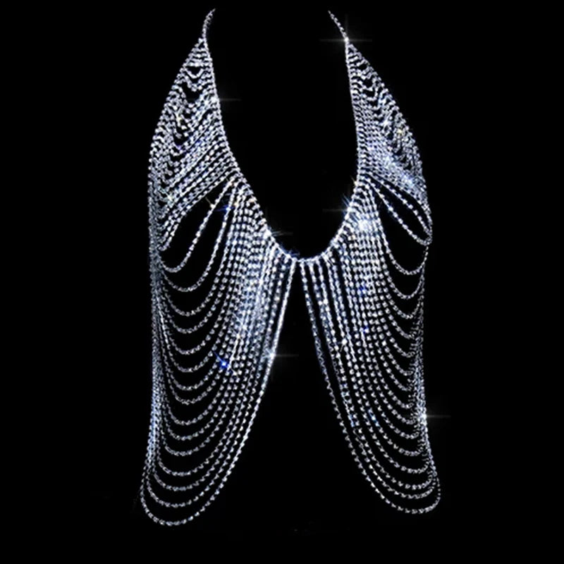 Stonefans Lingerie Shoulder Chain and Dress Bra Strap Necklace Wedding Rhinestone for Women Set Sexy Beach Bikini Jewelry Thong