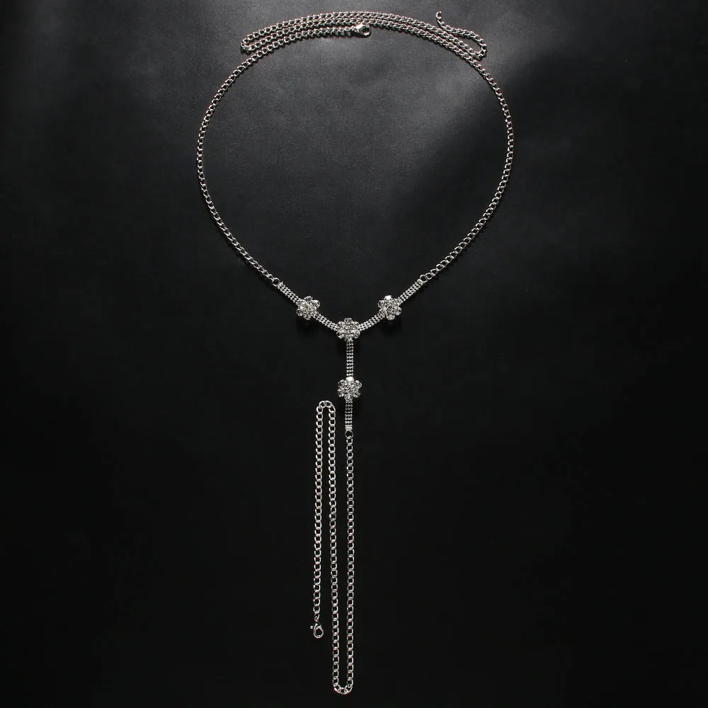 Stonefans Sexy Flower Crystal Thong Bikini Panties Jewelry for Women Stretch Rope Rhinestone Thong Panties Body Jewelry Party