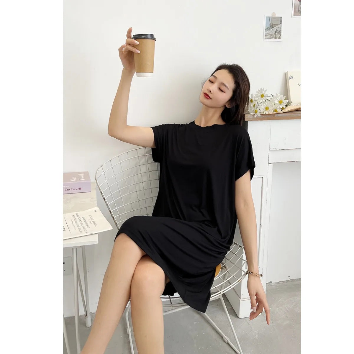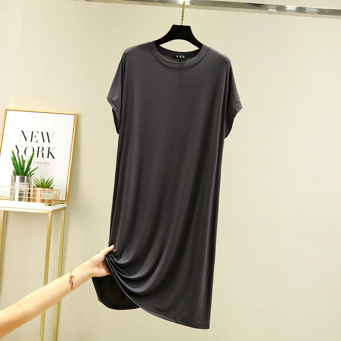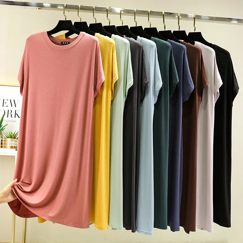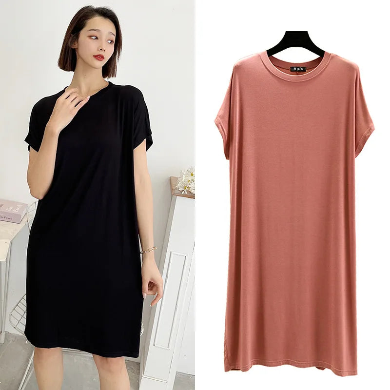 Summer Women's dress Causal Basic T shirt dresses O-Neck Short sleeves Modal A-Line sundress Simple plus size