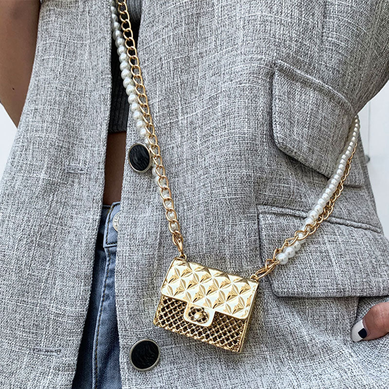 Super Mini Women Purse Top Brand Pearl Straps Gold Box Mini Crossbody Bag For Women 2021 Fashion Bag Chain Shoulder Luxury Purse
