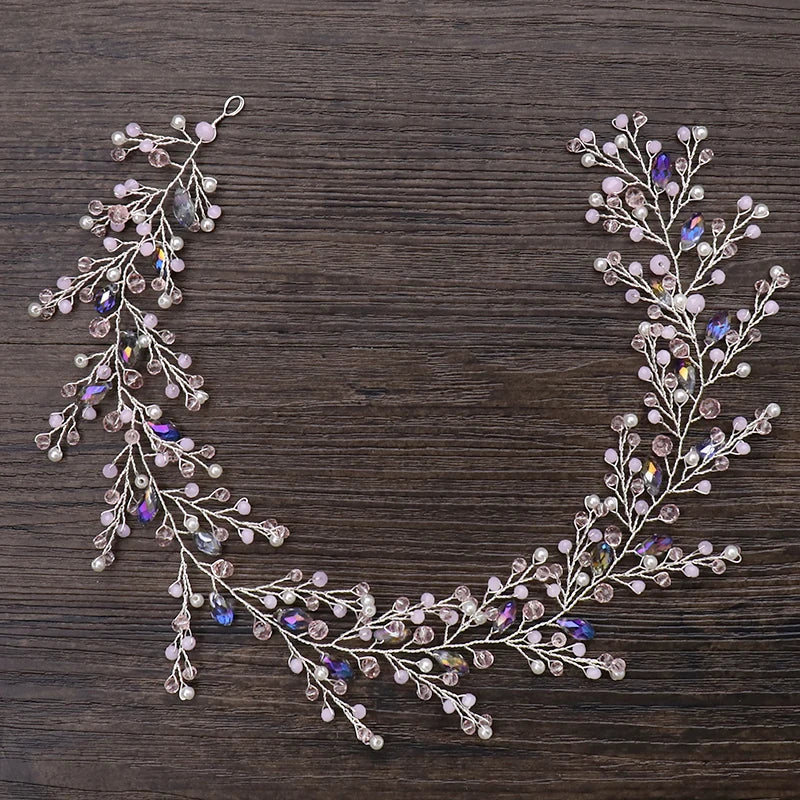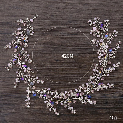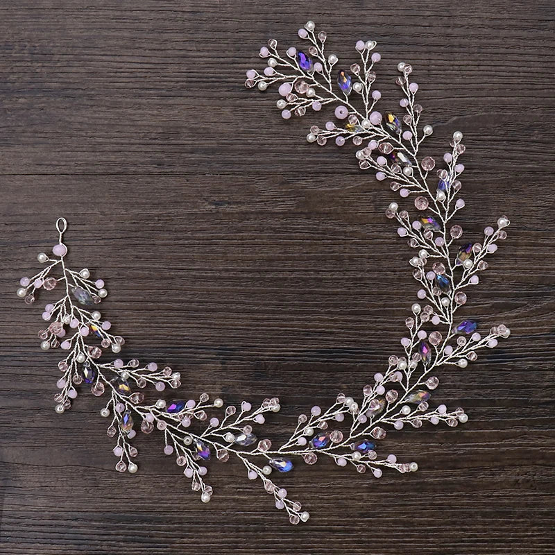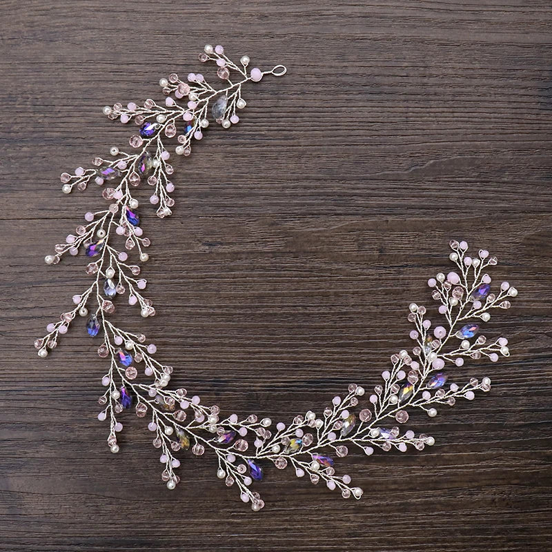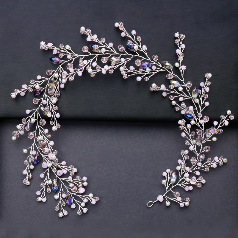 Trendy Purple Crystal Pearl Wedding Headband Tiara Handmade Hairband Bridal Headpiece Wedding Hair Accessories Women's jewelry