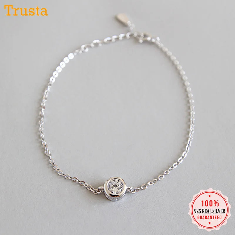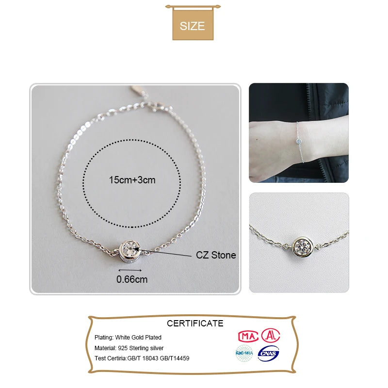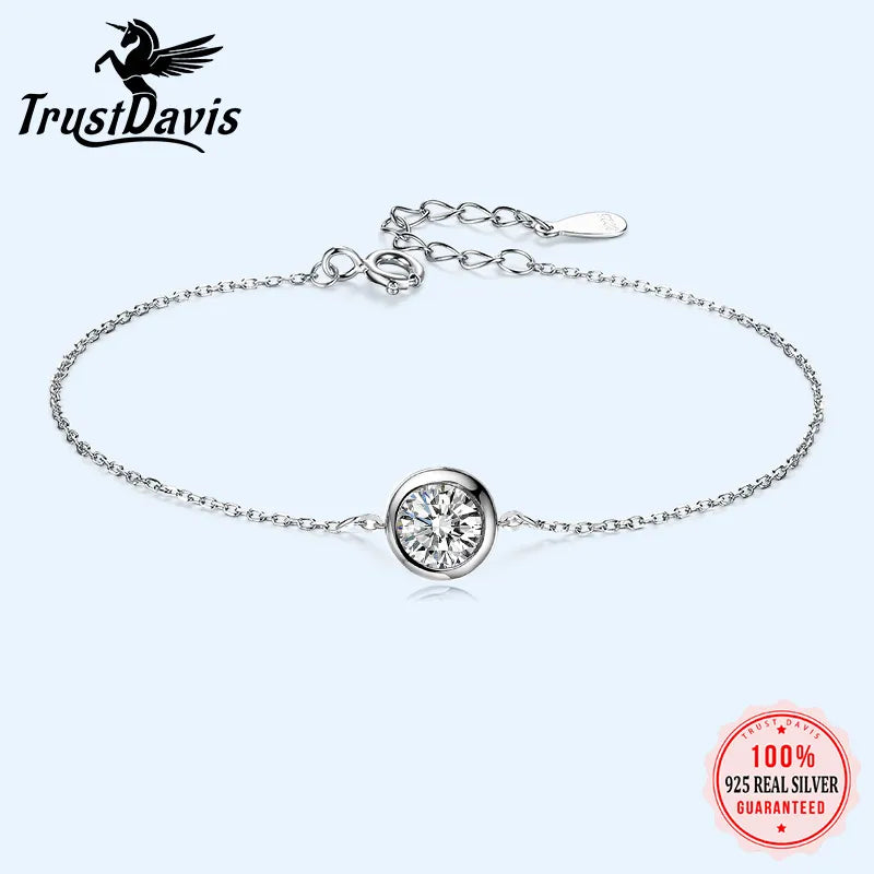 Trustdavis 100% 925 Solid Real Sterling Silver Fashion Women's Jewelry Round CZ Bracelet 15cm For Women Girl Lady Gift DA1227