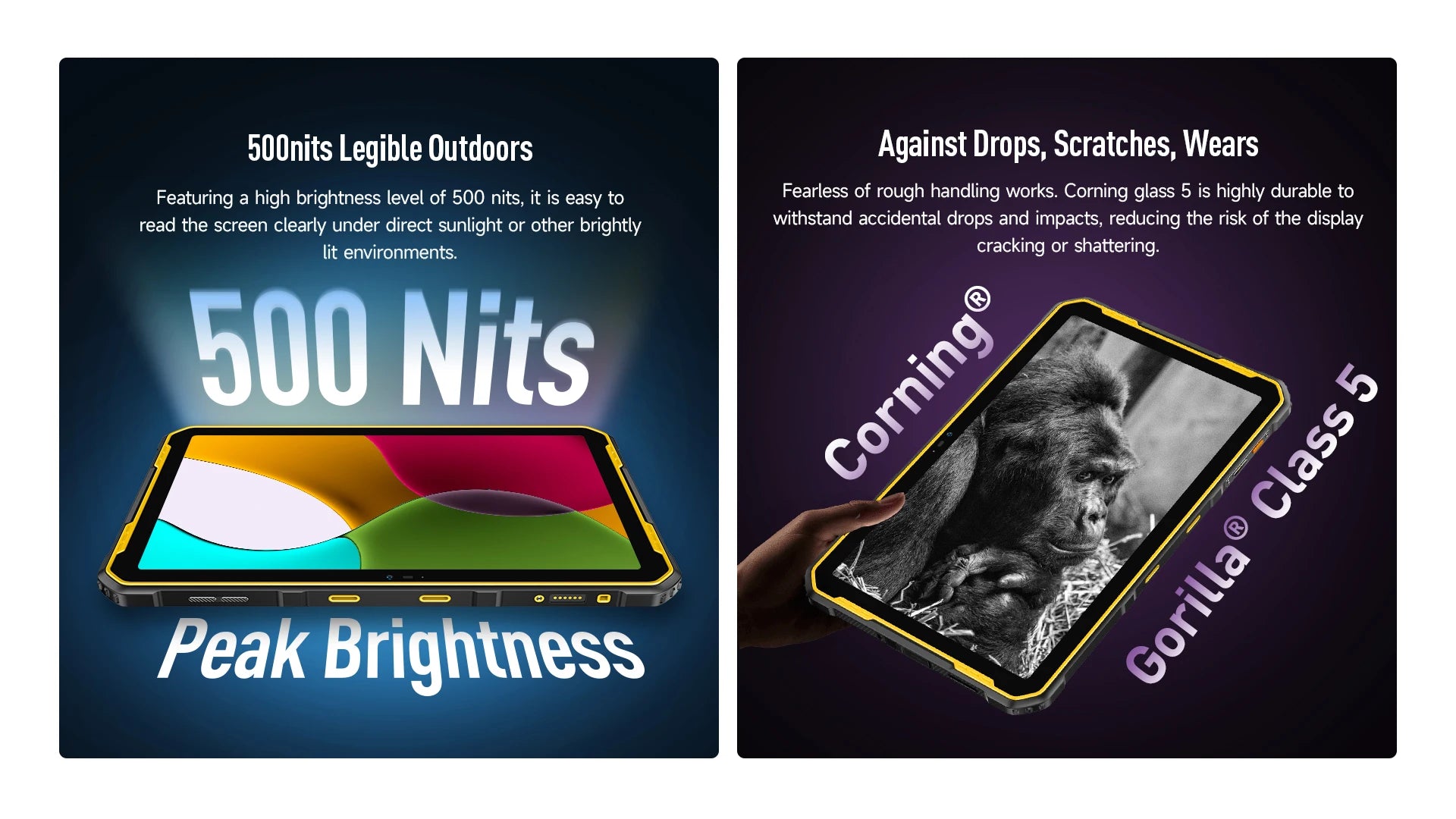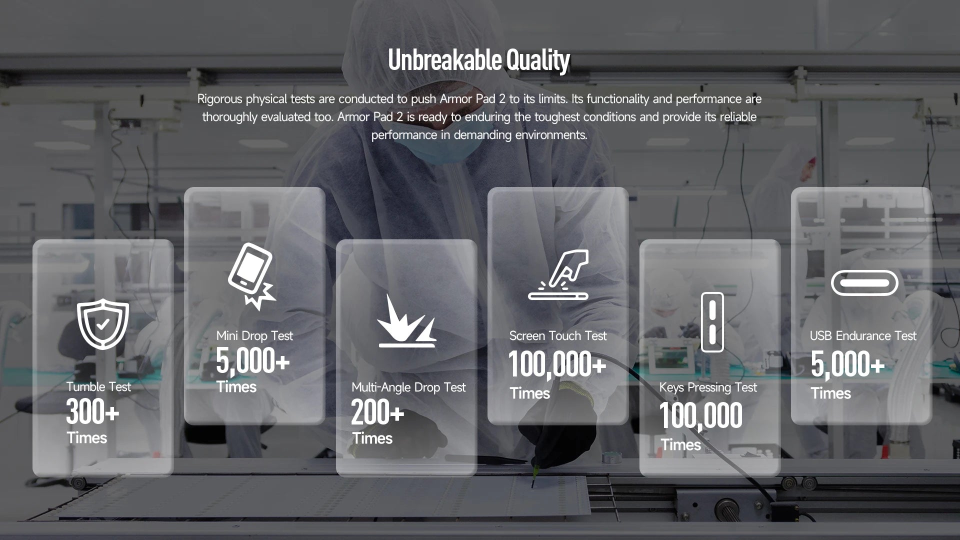 IP68 and IP69K ratings waterproofness and dust-tight, MIL-STD-810H military standard of drop resistance. Armor Pad 2 behaves like a warrior under harsh conditions such as extreme weather, rough handling works. Integrated injection molding provides its shell extra strength and sturdy feature, better waterproof and dust resistant performance. The raised frames design offers more reliable protection.