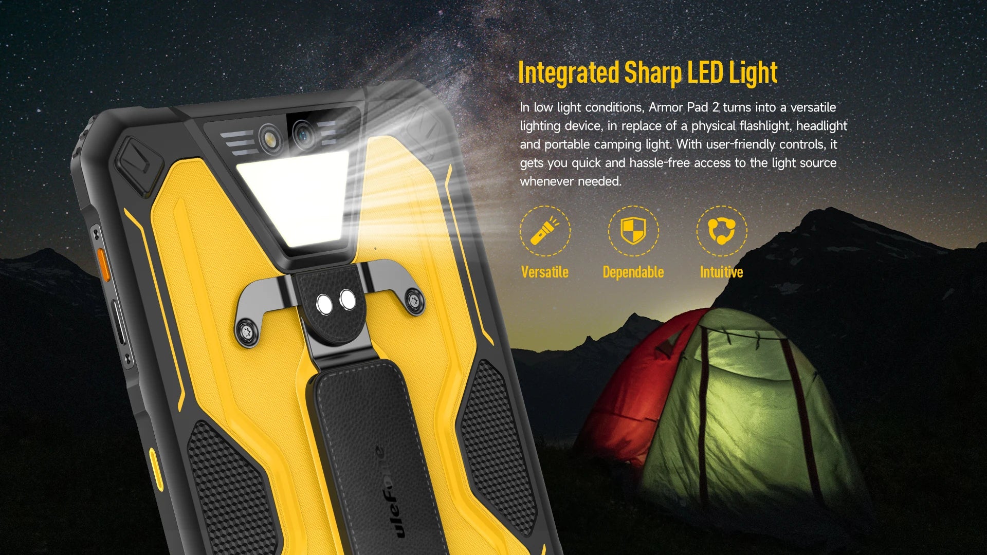 In low light conditions, Armor Pad 2 turns into a versatile lighting device, in replace of a physical flashlight, headlight and portable camping light. With user-friendly controls, it gets you quick and hassle-free access to the light source whenever needed.