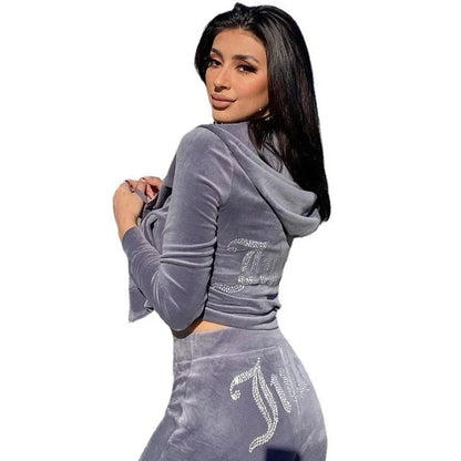 Velour Juicy Sewing Suit Hoodies Velvet Zipper Sweatshirt and Pants Set Sportswear 2023 Women's Spring/Fall Tracksuit Crop Top