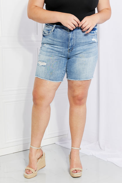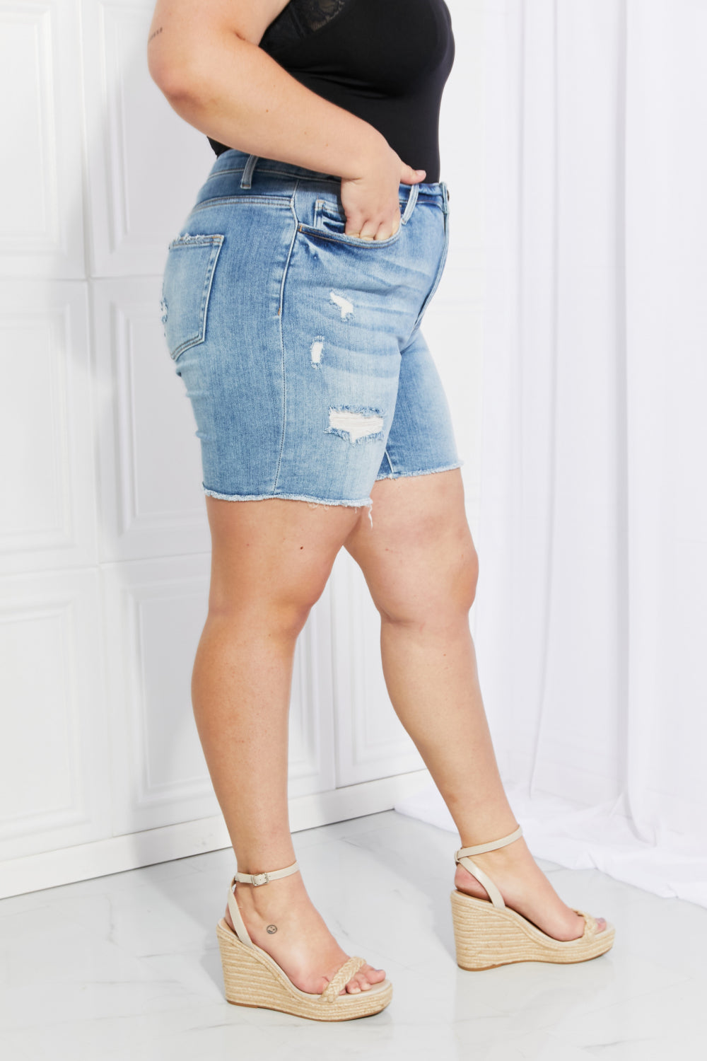 These distressed denim shorts are a must-have for any modern wardrobe. They have a classic, clean cut and feature pockets, so you can store all your essentials.