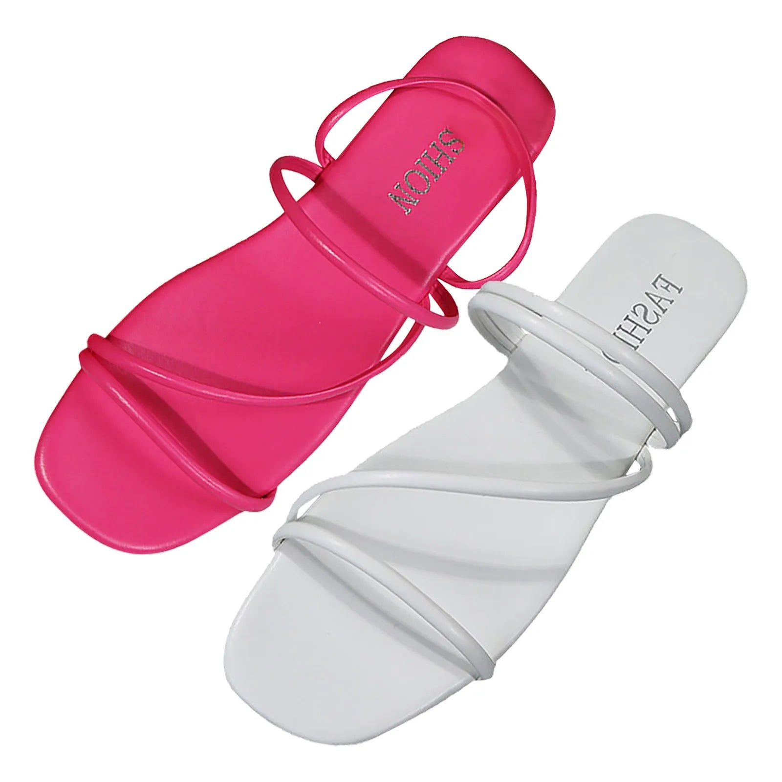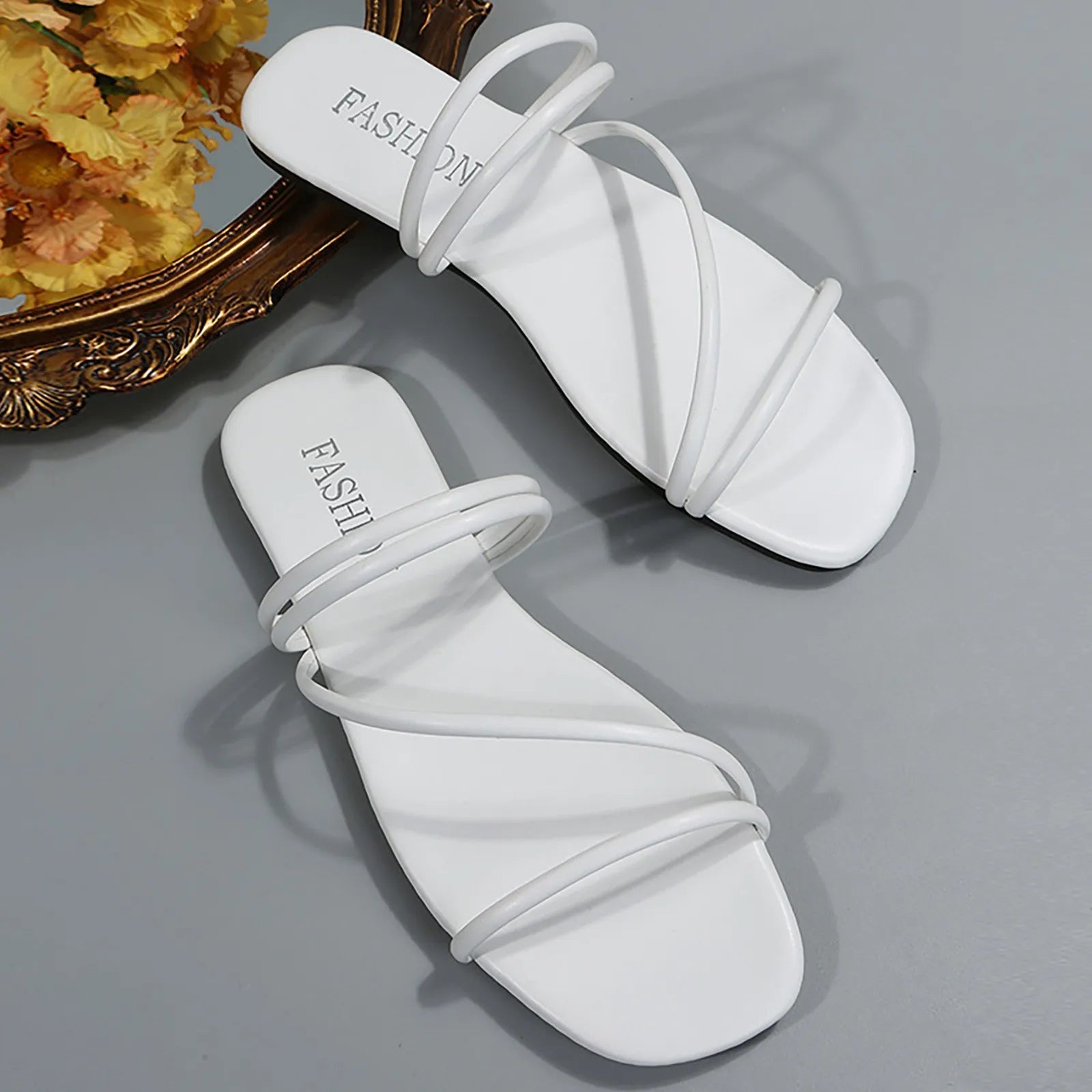 White Women Sandals Open Toe Fashionable Summer Concise Strap combination Flat Beach Daily Sandals Versatile Women Slippers