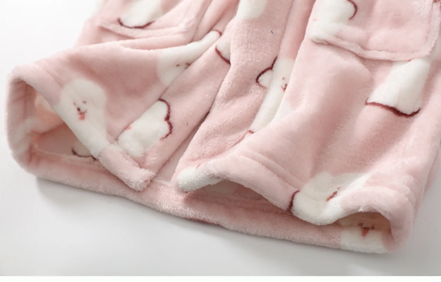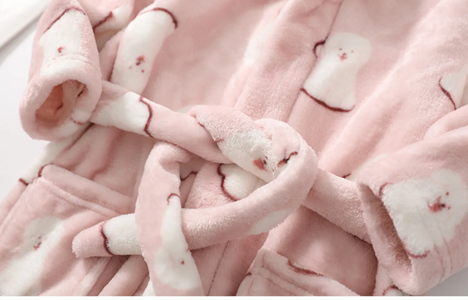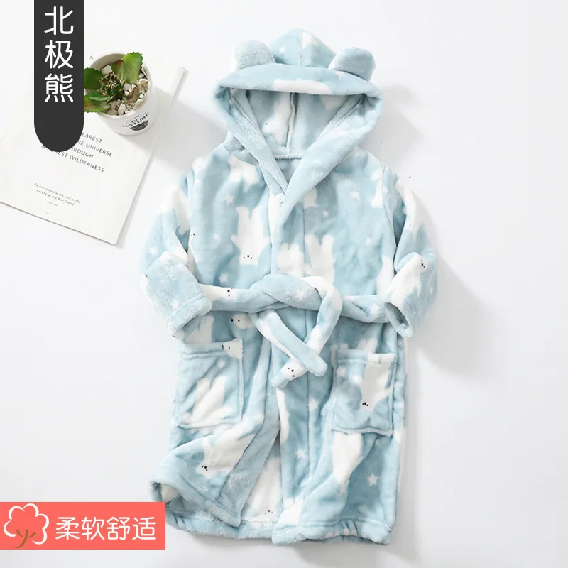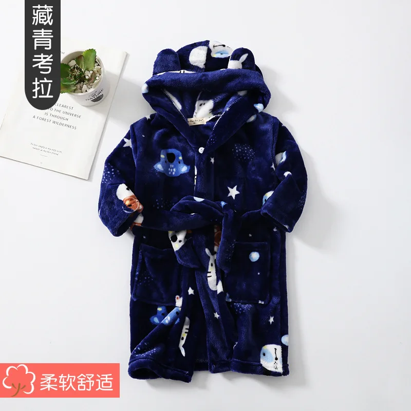 Winter Children Flannel Bath Robe Baby Cartoon Printed Hooded Bathrobe Baby Boy Girl Pajamas Kids Sleepwear Robe Nightgown