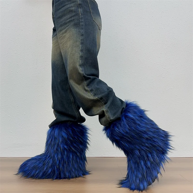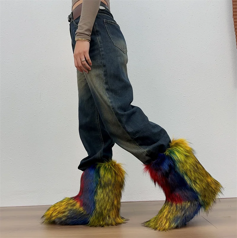 Winter Shoe Women's Winter Fluffy Faux Fox Fur Boots Woman Plush Warm Snow Boots Luxury Footwear Girls' Furry Fur Bottes Fashion