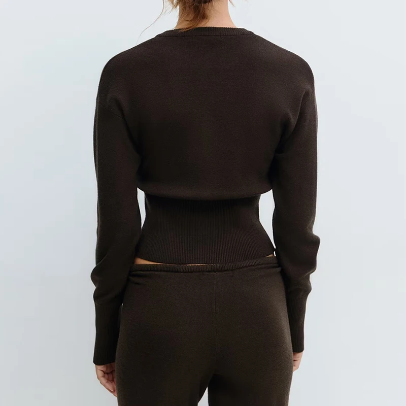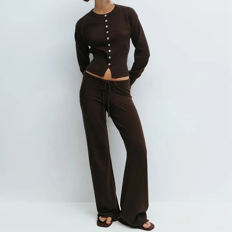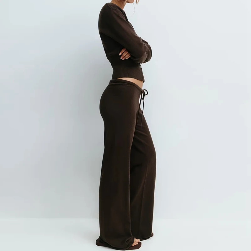 Women Loungewear 2 Piece Pants Set Button Up Long Sleeve Crop Cardigans Sweater Low Waist Knitted Trousers Fall Winter Outfits