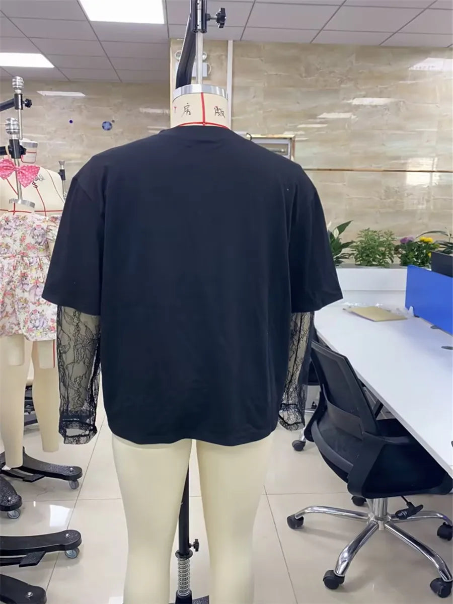 Women Round Neck T-Shirts Lace Long Sleeve Casual Shirts Spring Fall Loose Fit Tops Streetwear