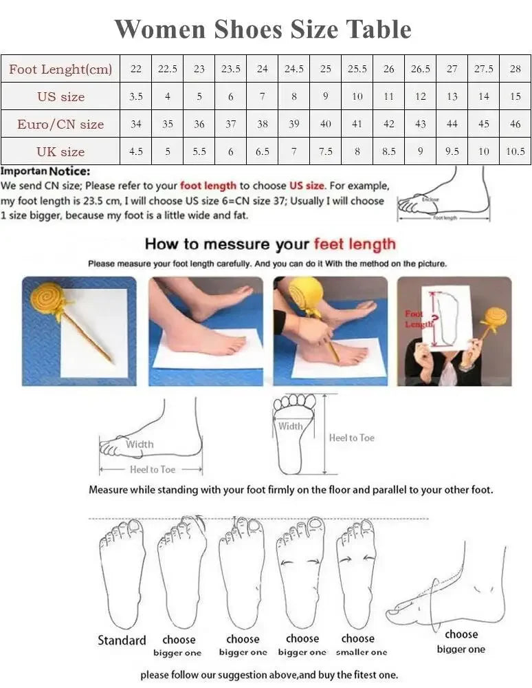 3. Please read our shoe size table carefully! It can help you choose the right size for your feet. If you have any other questions, please contact our customer service first, we will help you solve. Please note that if your feet are too long or too wide, choose a larger size than usual.