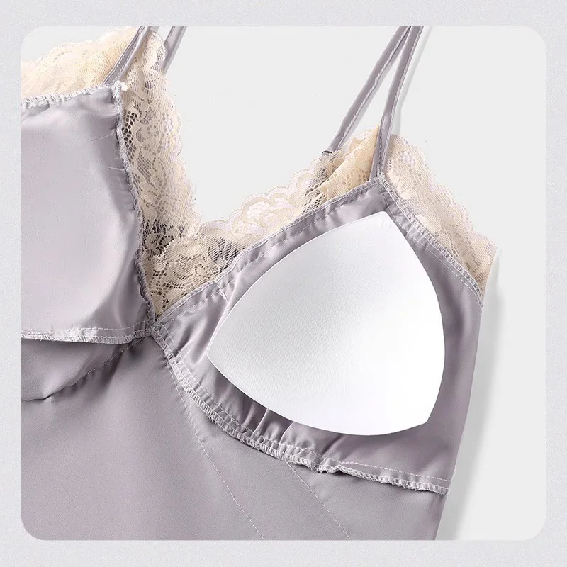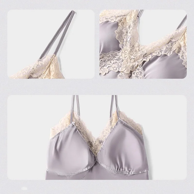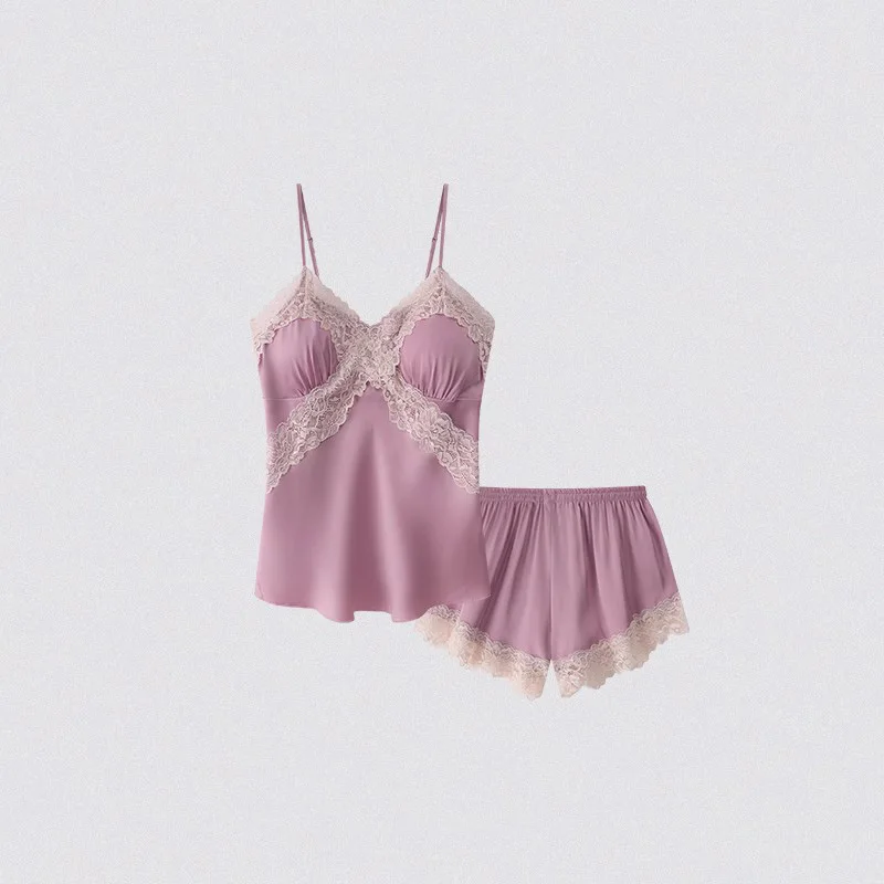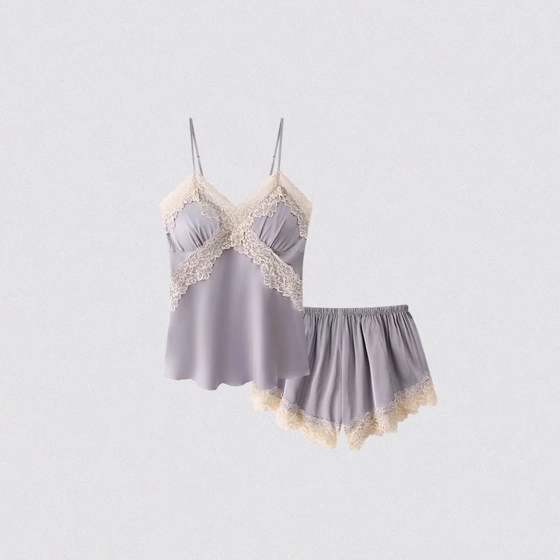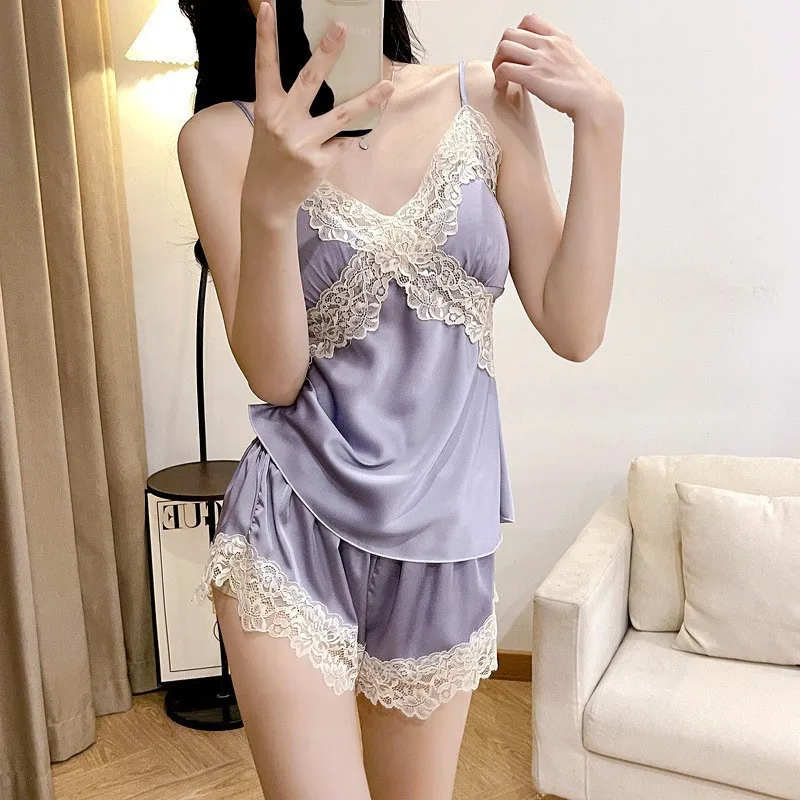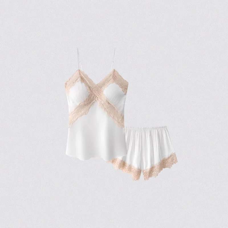 Womens Sexy Satin Pajama Set Lace Trim Cami Top Shorts Lingerie Sleepwear Silky Black Cream V Neck Spaghetti Strap Two Piece