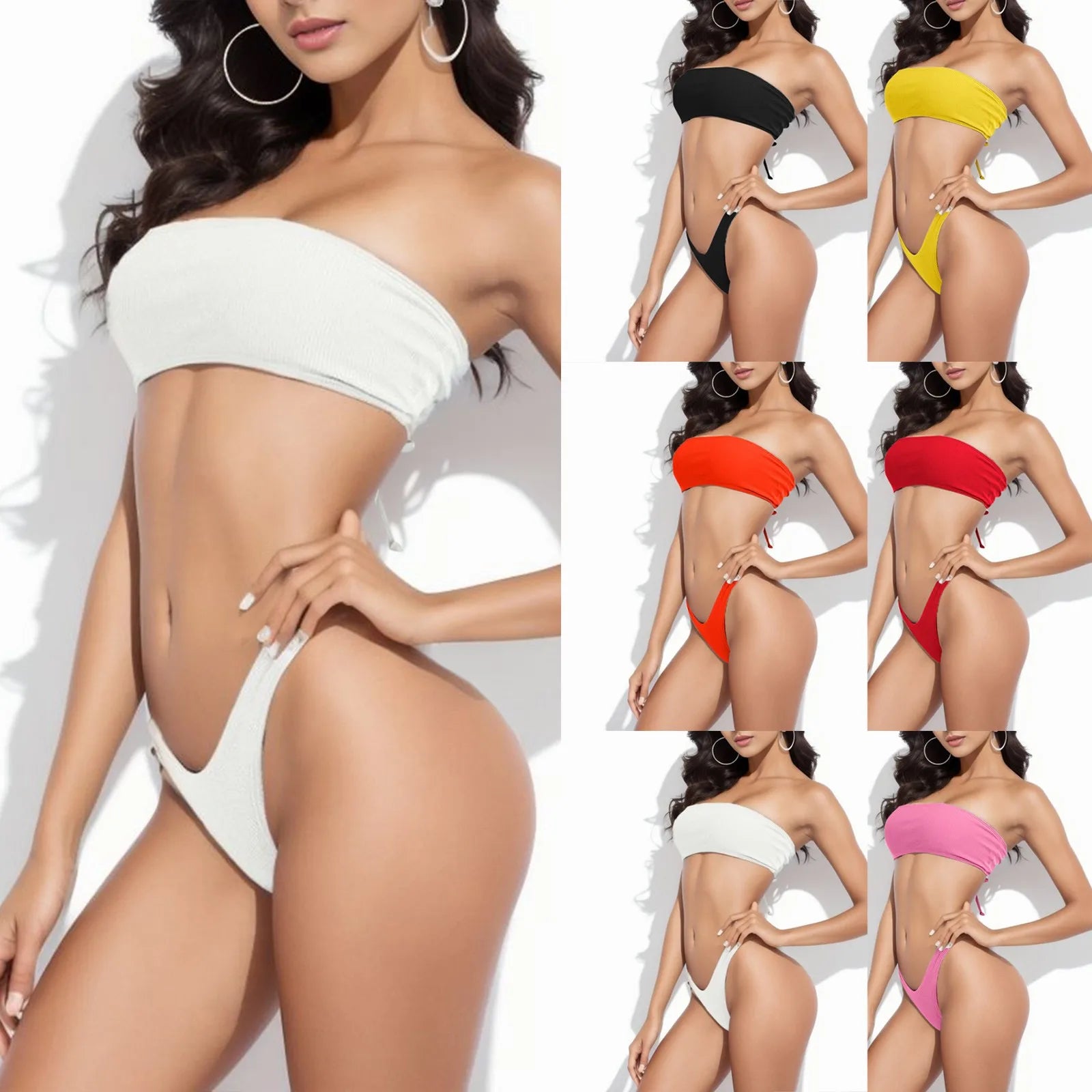 Women's Sexy Tube Top Bow Split Bikini Swimsuit Swim trunks Swimming Suit For Women's Beach Outlet 2024 Beachwear Swimwear