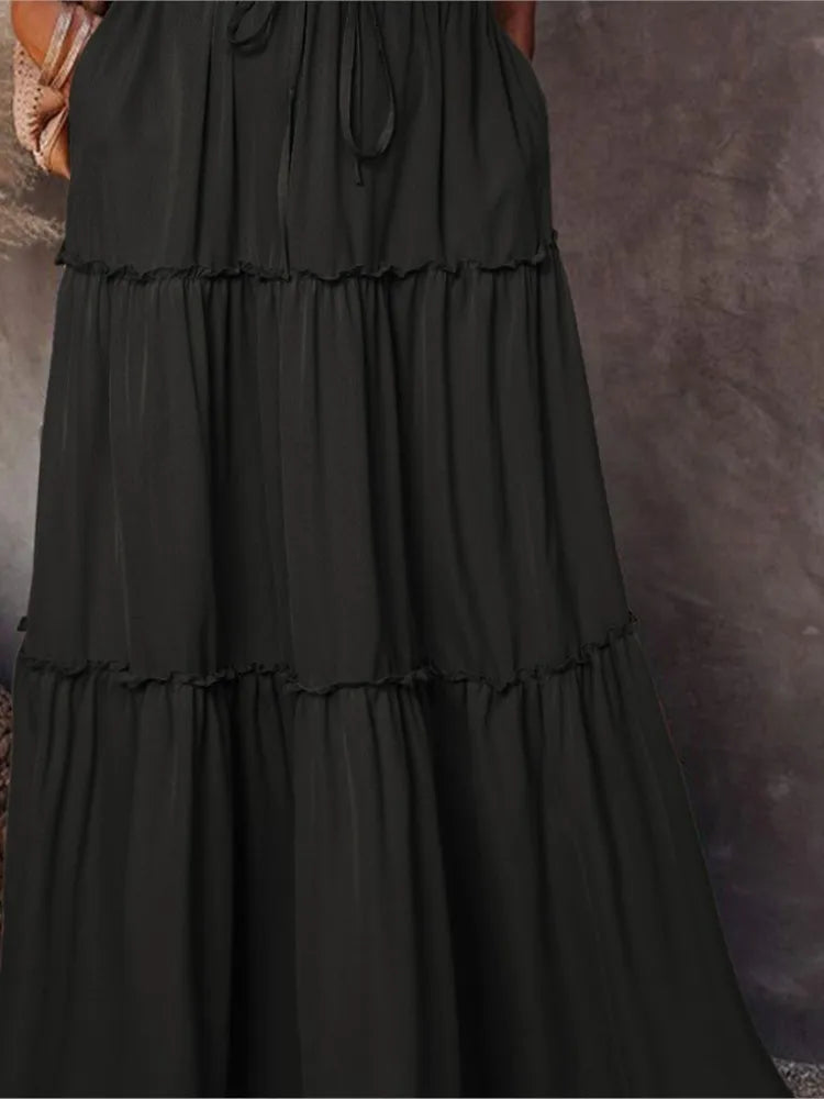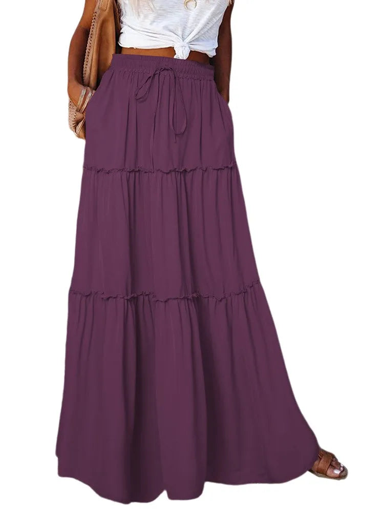 Women's Spring Autumn New Long Skirt Solid Color Fashionable Mushroom Layered Skirt High Waist Elastic Ruffle Skirt