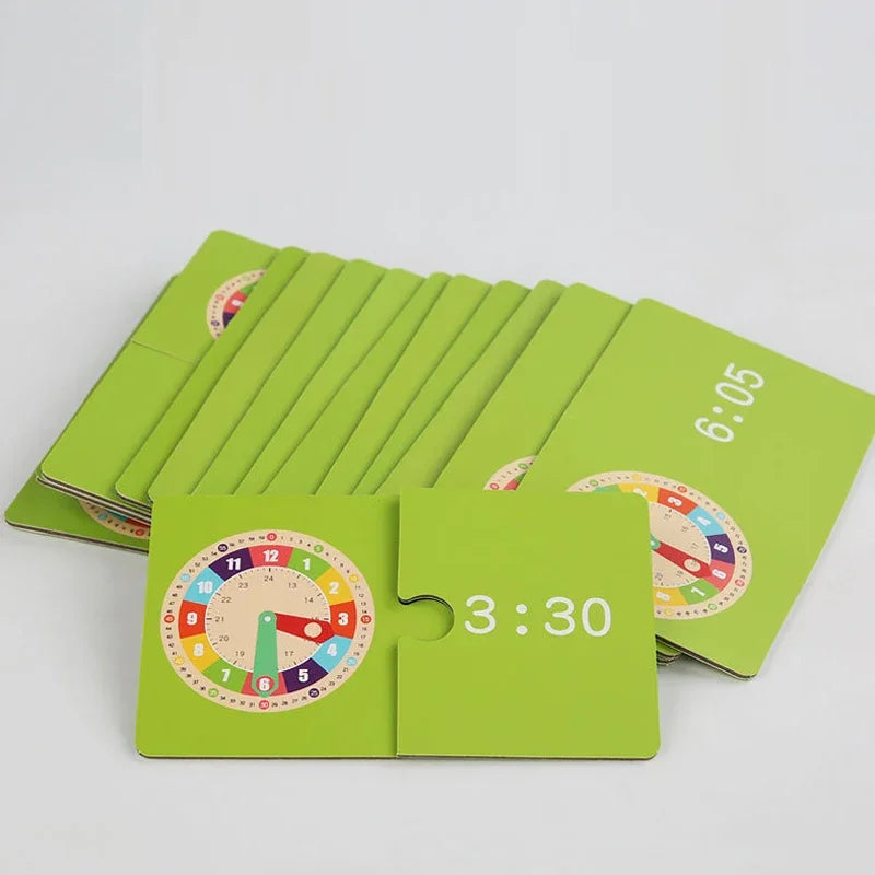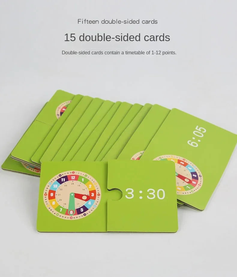Wooden Clock Model Teaching Aid Montessori Learning Clocks with Cards Kindergartner Toy for Game Interaction Playroom Wall